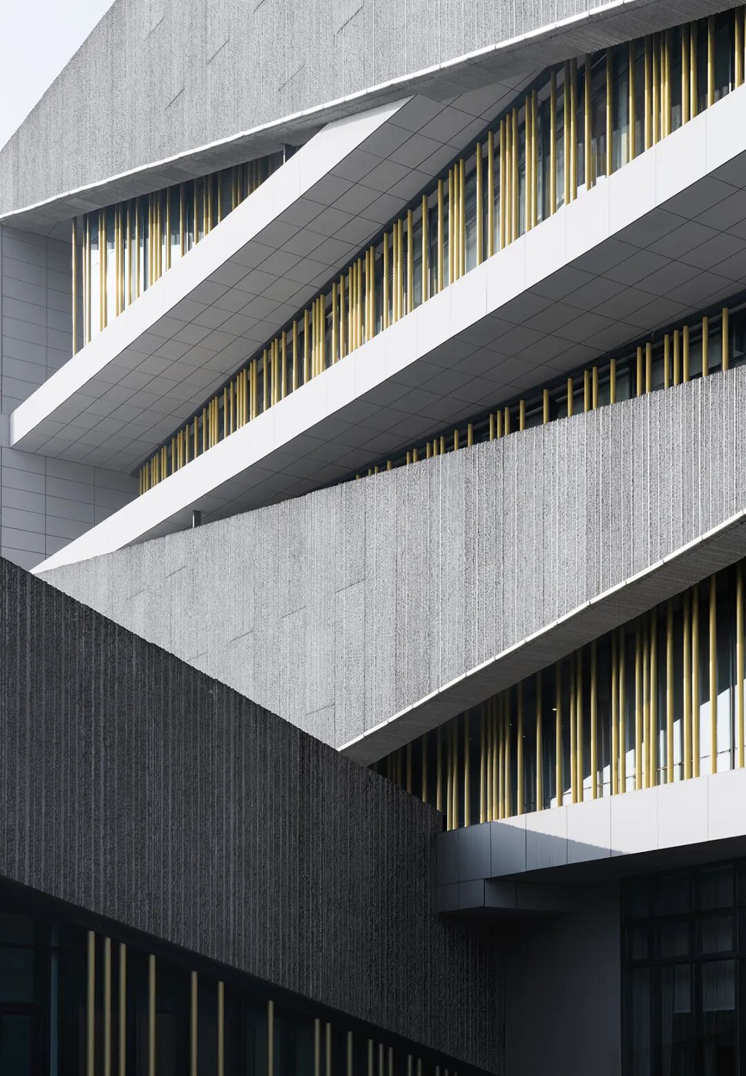 结合遮阳因素与室内不同部位采光需求的不同,建筑立面设置有交替错落的竹叶形装饰构件,突出了建筑剪影般的虚实对比,让建筑既有折纸般的灵巧性,又有文化建筑的厚重感。