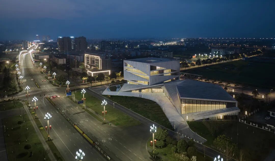 建筑仿佛是矗立在城市中的一件”折纸艺术”,形态如折纸般起伏,转折,包裹。从地面到墙面再到屋面,连续完整,一气呵成。