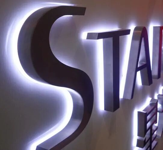 用数控机床冲压出字体,表面安装LED发光灯珠。