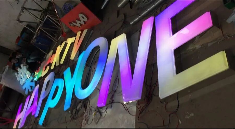 包括七彩发光字、全彩(炫彩)发光字,采用IC芯片加控制器来控制LED灯发光变化,字壳通常是亚克力(吸塑)或金属冲孔烤漆字壳。
