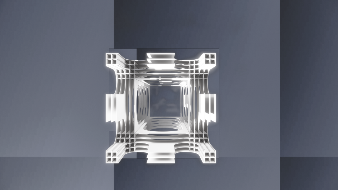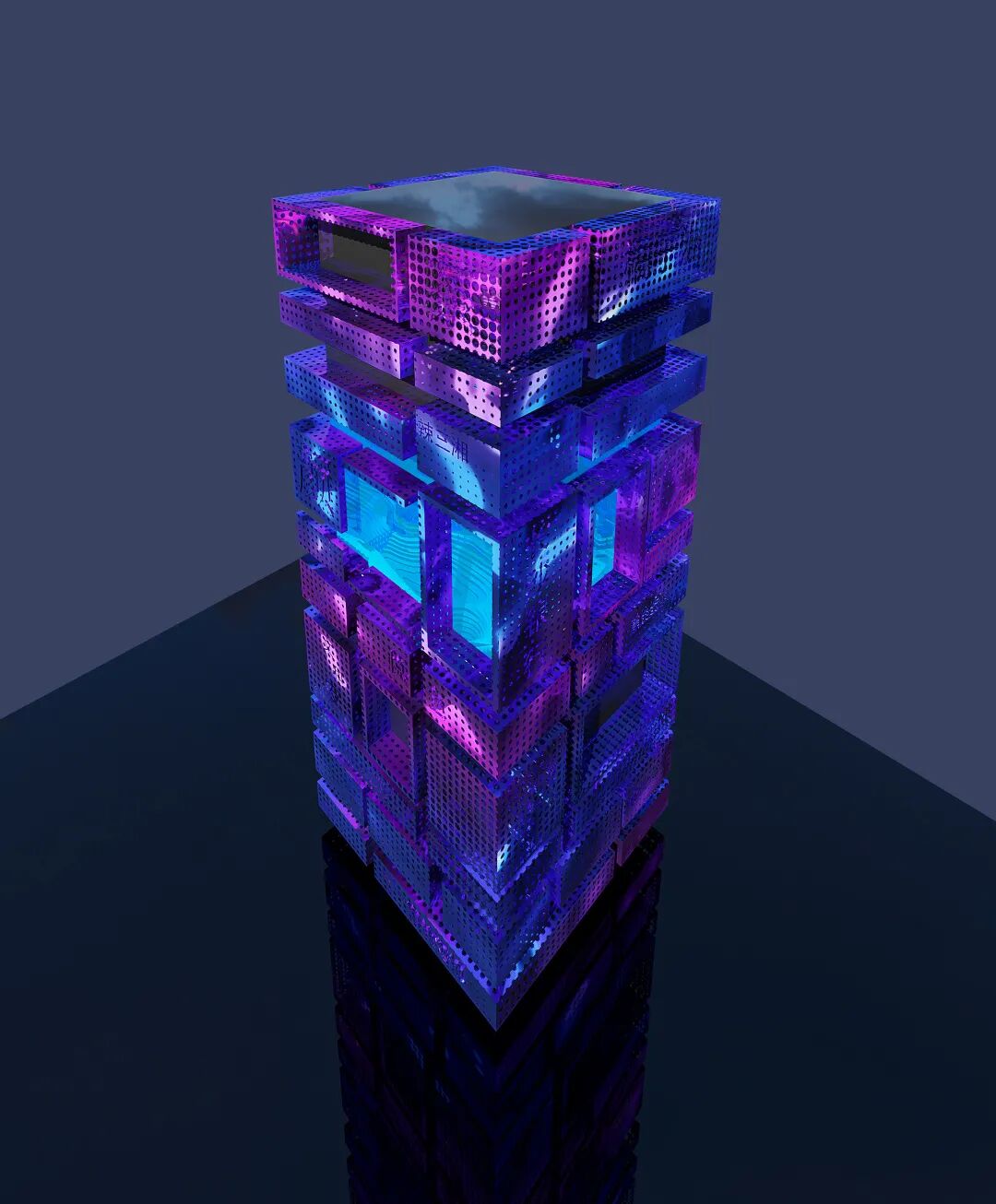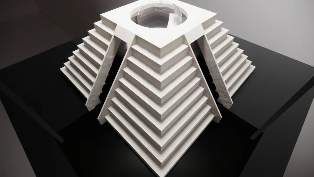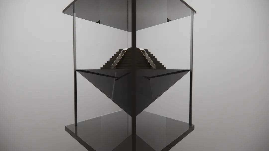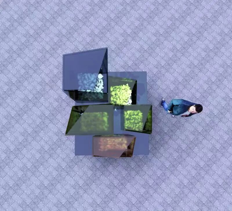 装置主体以玛雅金字塔为核心造型,寓意信仰与高度;建构间收藏了一颗水晶苹果,寓意一种关于美好成果的向往。四周倒影叠加,光影四射,一切绚丽多彩,光芒万丈.....