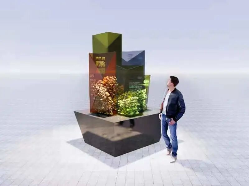整个建筑向上发展是城市的进程,中间核心亚克力景观倒映则是希望在发展的进程中不忘初心,以山水洲城的生态核心理念来发展城市!