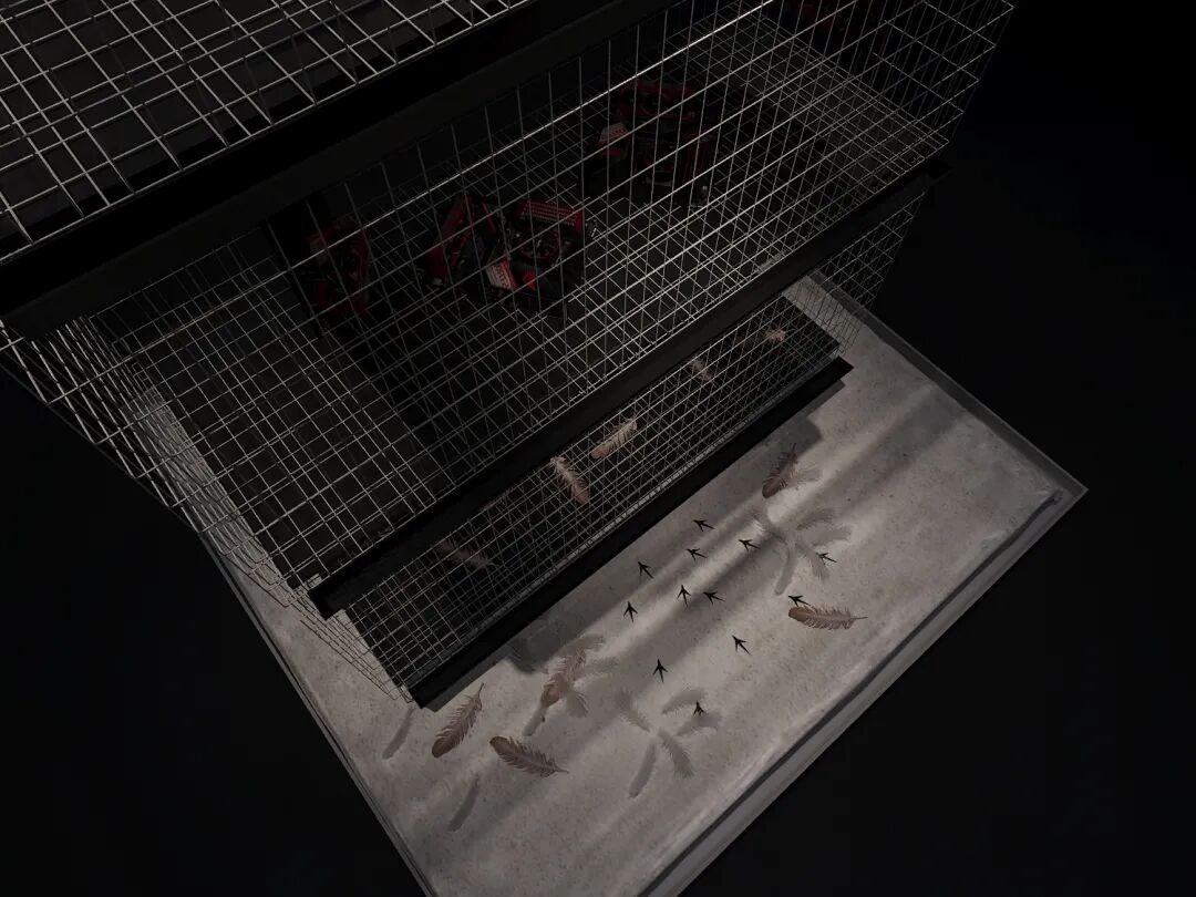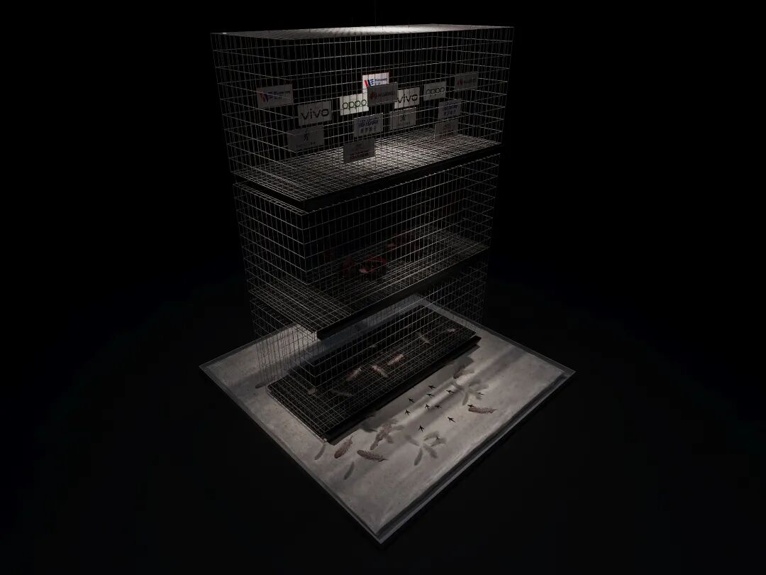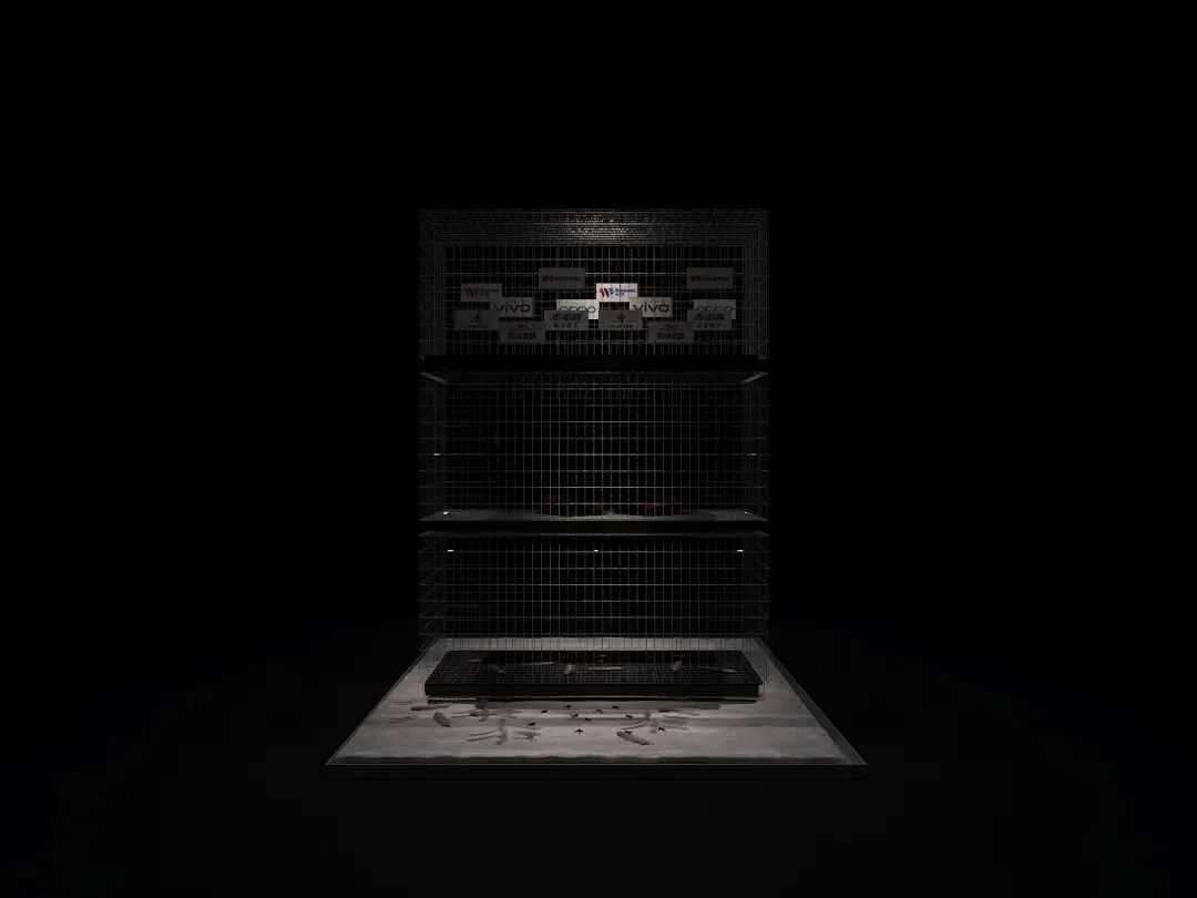 装置作品中的“笼”寓意旧的意识形态及城市发展中的“制约之痛”,如环境污染、能源困局、成本攀升等“城市化进程成长中的烦恼”。