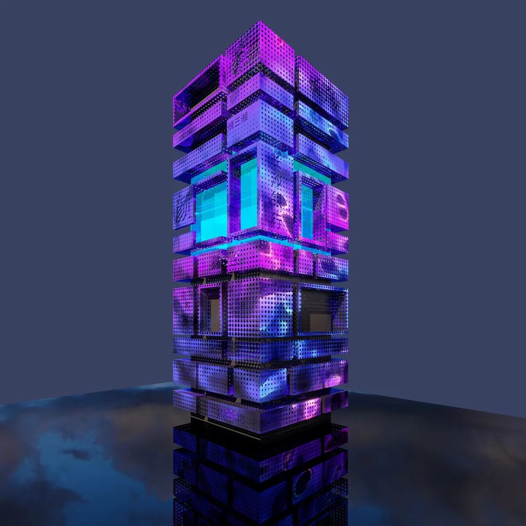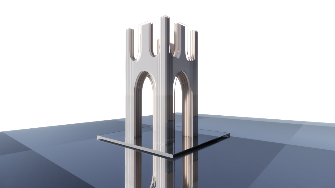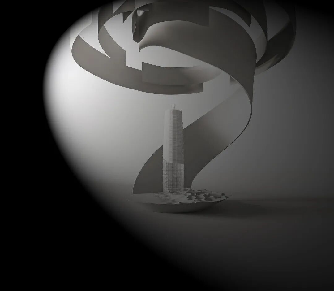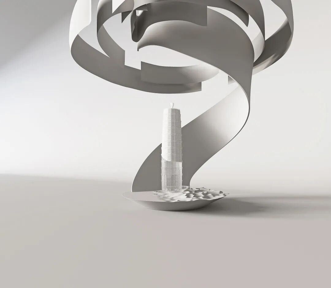 装置寓意为屹立在洪水中持续向上的千玺广场,千玺广场设计灵感来自于我们国家现存的最古老的“嵩岳寺塔”,距今已有1400年的历史,它是郑州的象征和骄傲,中原大地的地标和郑州市的名片。
