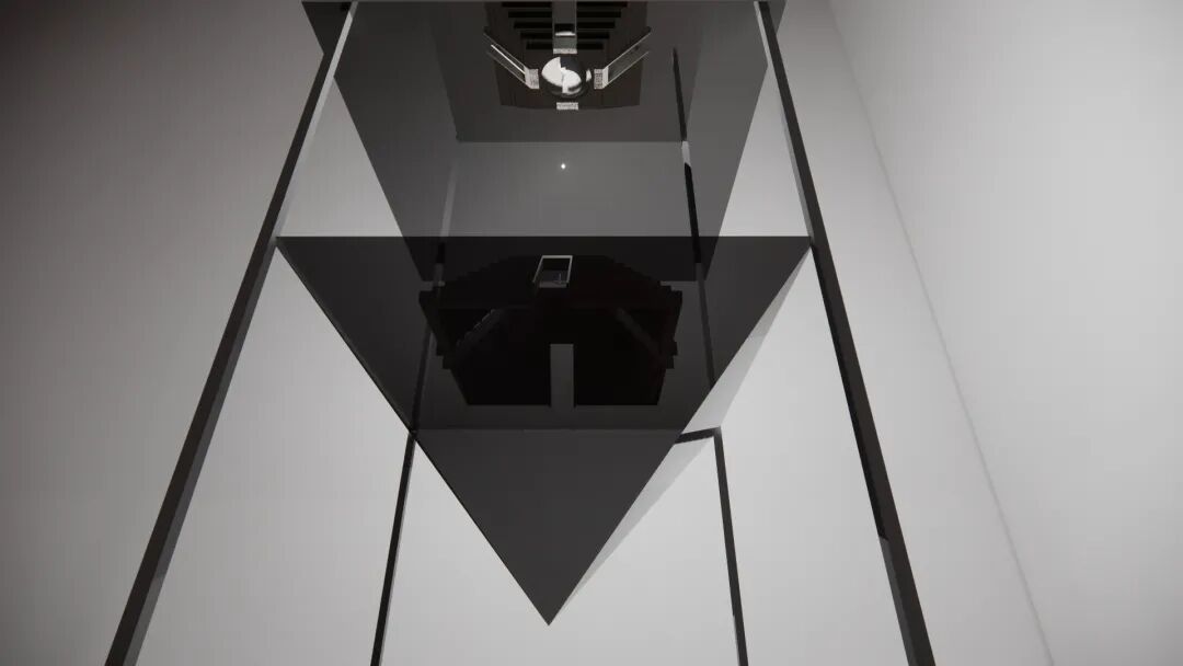 似乎,高级、奢华、美丽、大气……等形容词早已成为一个创造者的非专业提报语汇,甚至是目的,不经反思,所有人在努力创造好看高级的水晶苹果的同时,是否早已忘记苹果最初的存在意义。装置将“知善恶树”的果实整个置于悬浮的倒三角岛上,我想说,它很美,但也很脆弱。