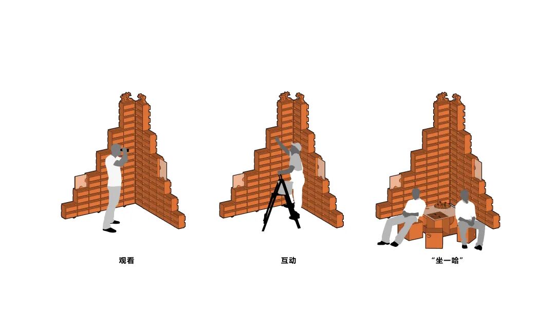 设计提取生土窑洞和西安古城墙所共有的“拱洞”拱形符号,将陕西最具有特色的两种建筑形式进行了融合与再造。