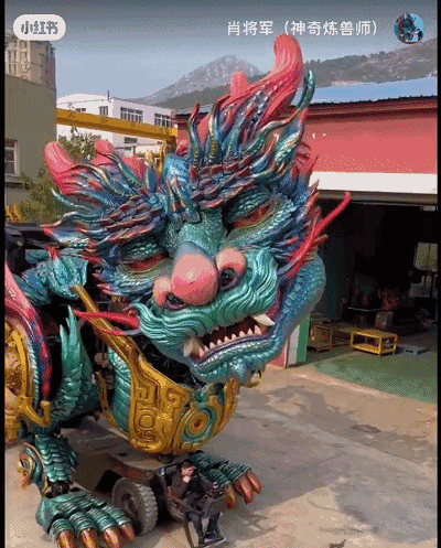 图片里的神兽并不是CG特效,是个真家伙——高达10米的机械巨型神兽麒麟 !
