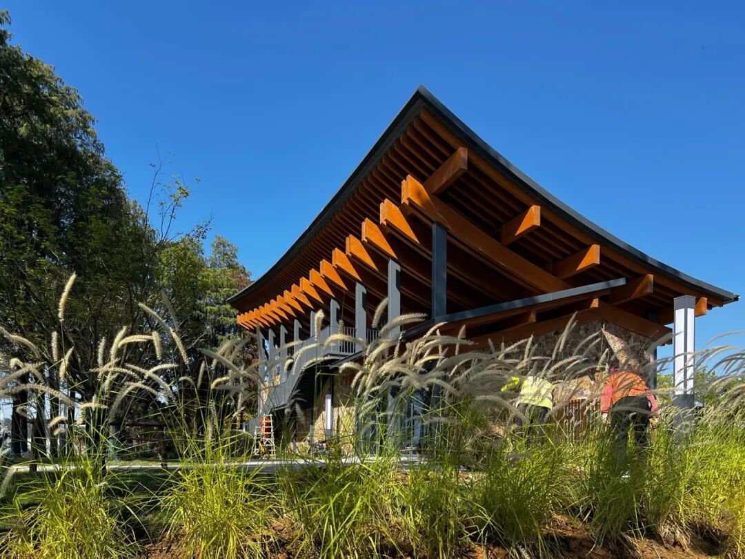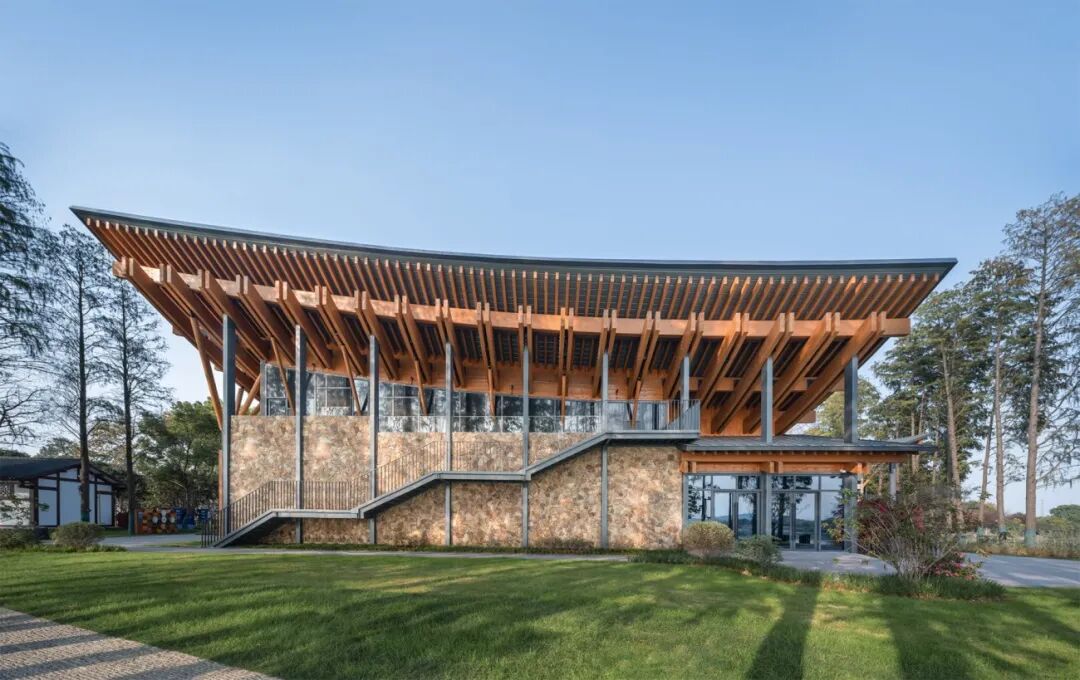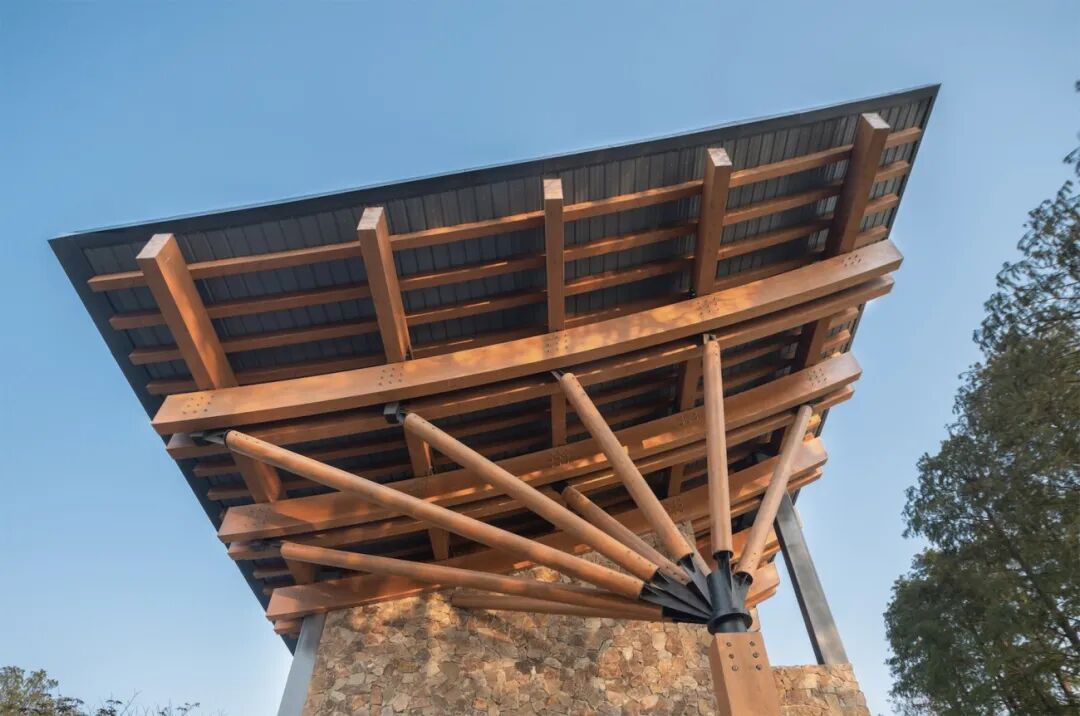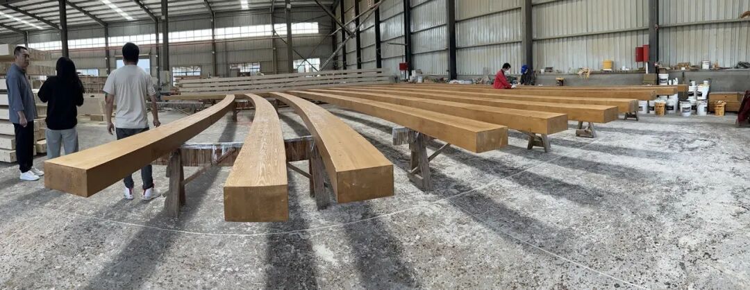 Hyperboloid roofs mean that curved primary and secondary beams have to be used, which is a huge challenge for traditional manufacturing processes, but in the digital age, it's not difficult. Linlangmu Construction Technology Co., Ltd. easily achieved the design effect with a mechanical arm.