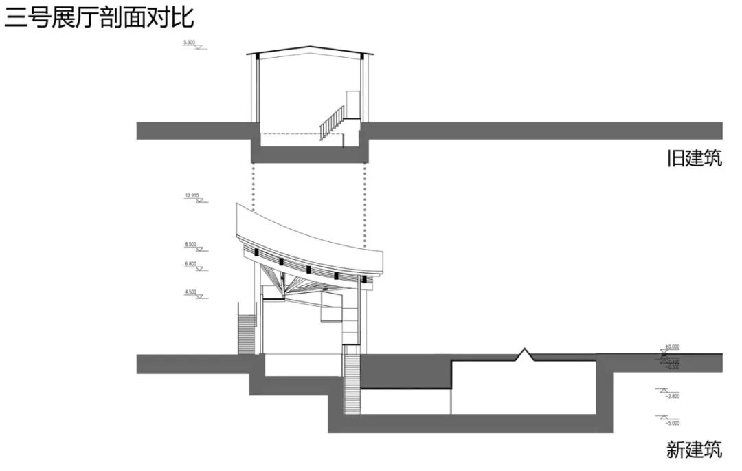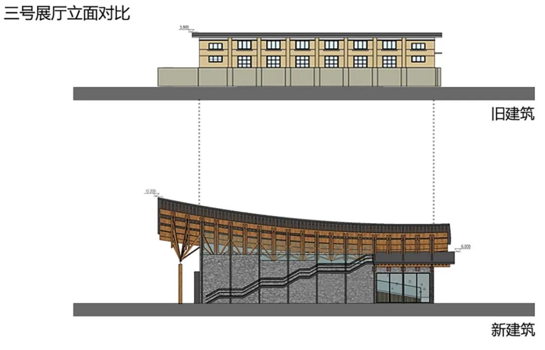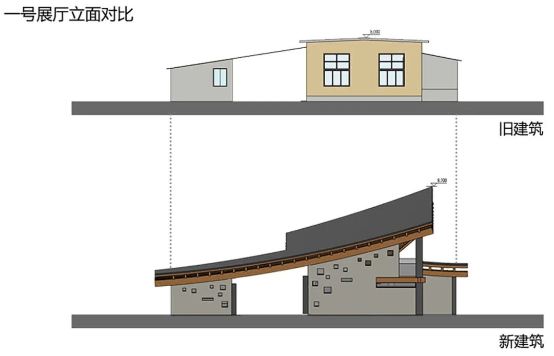 These used to be waterworks, with water pump room, staff canteen, kitchen and staff dormitory. The waterworks were abandoned more than 20 years ago, but the building and the mechanical equipment inside are still there. We hope to revitalize and regenerate the old factory through the design, and implant new cultural scenes and display functions while retaining the memory of the place. On the basis of this group of abandoned buildings, we redesigned the exterior wall and roof, and reorganized the viewing line. As the original building area was too small to support all the contents of the exhibition, we dug a 7-meter-deep basement on the back side of the water and used it as a multimedia exhibition hall. As a general scale exhibition, it is not necessary to have such a high space. Therefore, we made a mezzanine on the side facing the lake, forming a contemporary exhibition hall that combines the ground, air and underground multiple Spaces with the combination of text, material objects and multimedia display.