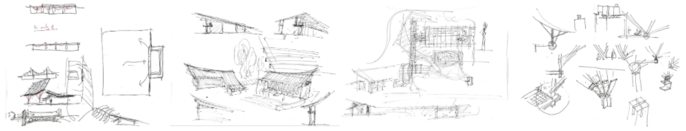 原有厂房的旧屋顶显得沉闷,原有员工食堂和厨房的单坡屋顶潦草简陋,原有宿舍的平屋顶与优美的东湖环境格格不入。我们参照水鸟翅膀的形态,结合中国传统木构建筑的举折曲线,设计了出檐深远的单坡屋顶,在面对大湖面的高侧空间中设置夹层,形成观景、观鸟平台;我们按照中国传统建筑的“彻上露明造”逻辑,特意暴露全部结构,以展现屋檐之下具有表现力的木构体系。建筑竣工之后,有人看出了飞鸟展翅的动势:野木迢迢遮去雁,渔舟点点映飞鸟,有人看出了湖北出土之编钟的影子,有人看出了钢琴键盘的隐喻,也有人看到了楚文化的特征;还有人看出了九头鸟的气势:天上九头鸟,地上湖北佬。建筑形态的多义性解读赋予了这组建筑更多的内涵。