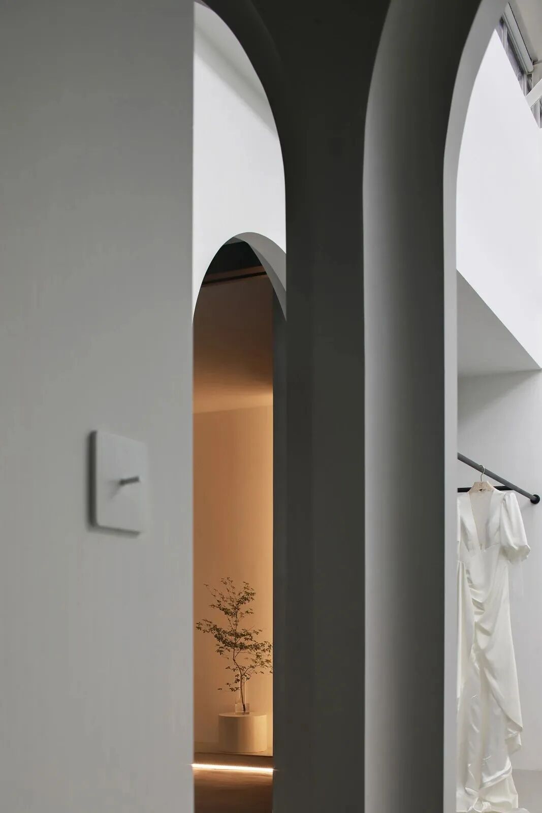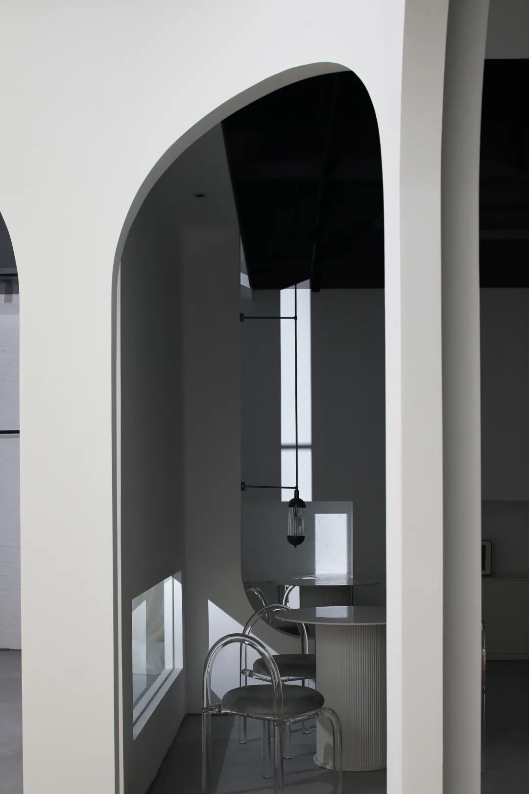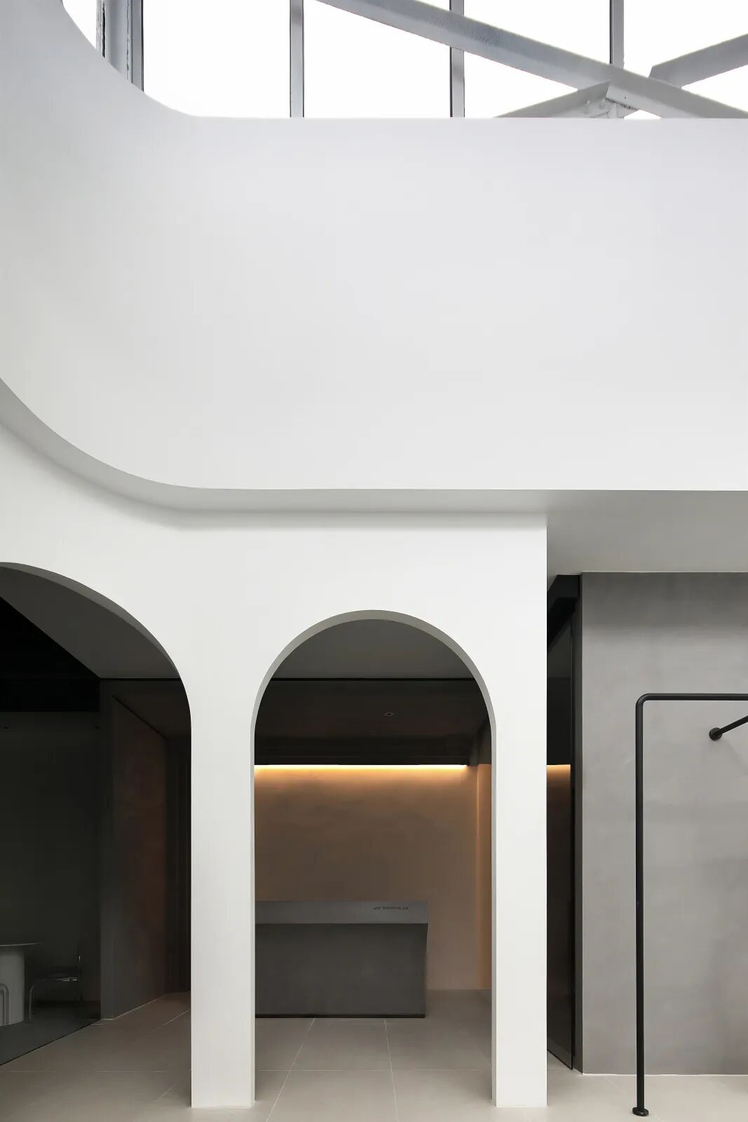 例如「JAF摄影所」的案子,中间的拱门造型,实际上是为了对客户的动线做出导流。它的每一个拱门都有相对应的功能需求。所以形式是为了辅助功能,同时也起到美化空间,增加空间趣味性的作用。