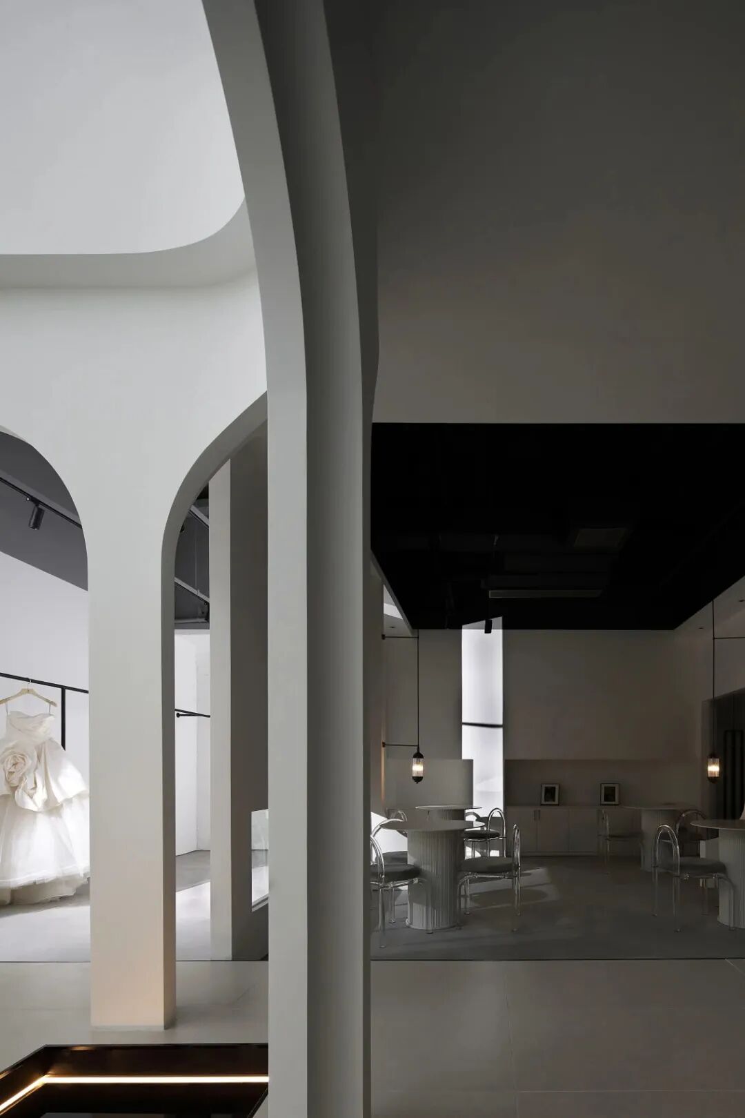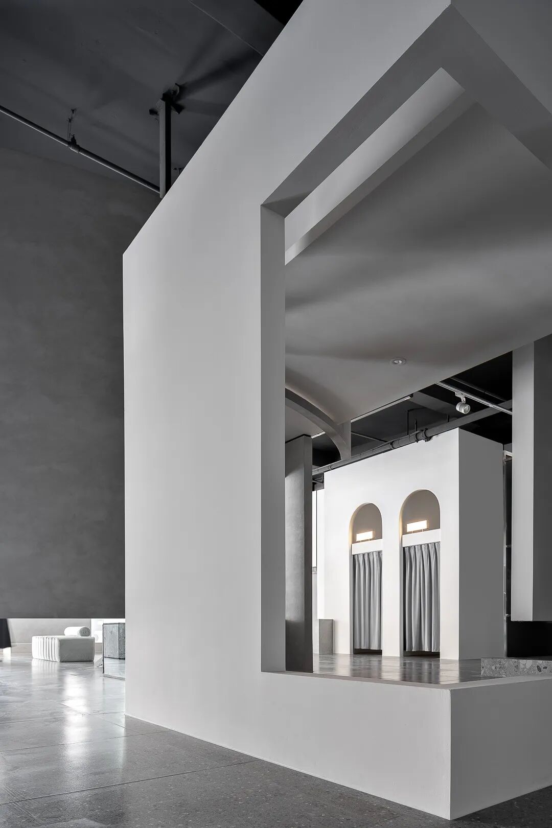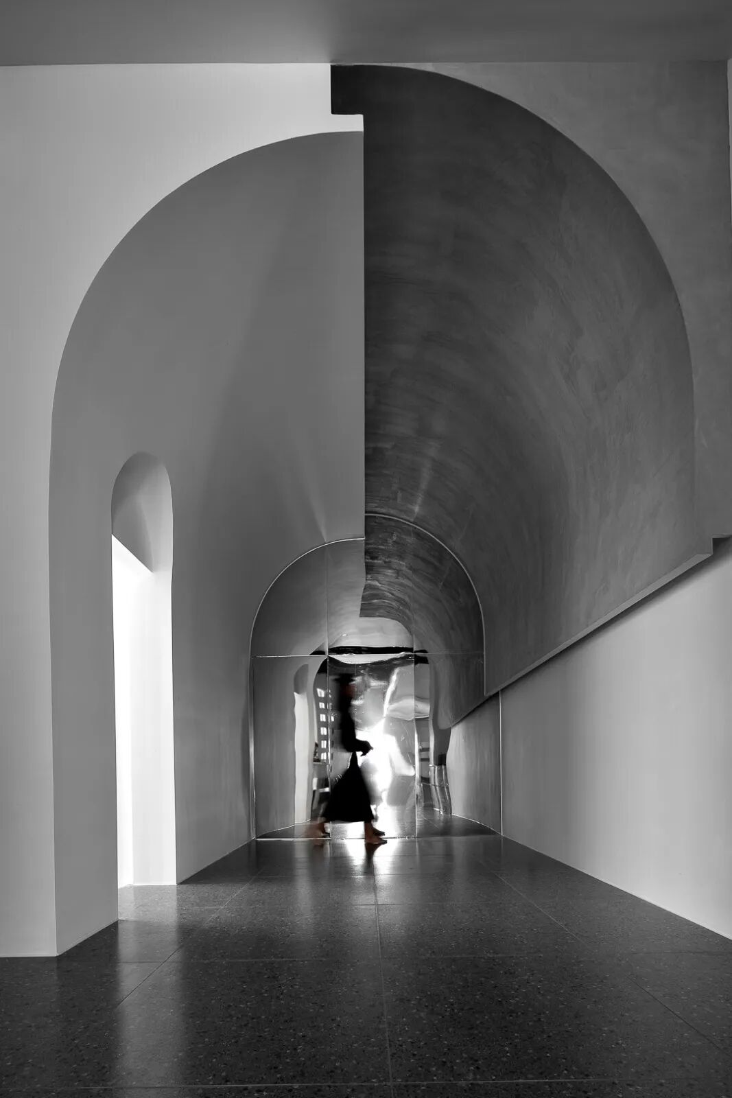 例如「JAF摄影所」的案子,中间的拱门造型,实际上是为了对客户的动线做出导流。它的每一个拱门都有相对应的功能需求。所以形式是为了辅助功能,同时也起到美化空间,增加空间趣味性的作用。