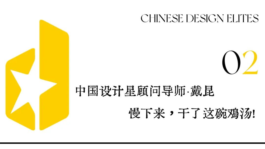 从业 30 年来工作横跨建筑设计、室内设计及产品设计等相关领域。以独具的审美将建筑、 室内、产品设计的工作整合形成对当代生活方式的整体诠释。引领和推动了城市居住生活方式变化的潮流。同时投入大量的精力于色彩流行趋势和相关应用的研究,开创性的将色彩理论研究与设计实践相结合,形成了具有独特表现力的标志性设计风格。荣誉加持,名誉披身,建筑师及室内设计师、创基金理事、北京居其美业室内设计有限公司创始人、中国设计星(2022-2023)顾问导师戴昆老师在设计上的高度与成就令人崇敬,但在中国设计星知识大会的现场,面对台下的众多青年设计师,戴昆老师却更想慢下来,炖一碗“鸡汤”。