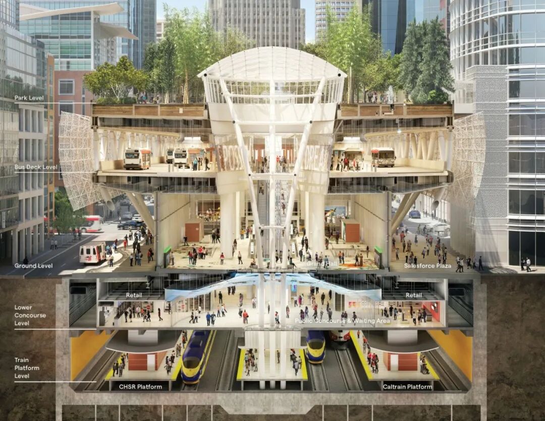 ▲环湾客运中心剖面 图片版权 ©Steelblue,建筑设计:PC&P建筑设计事务所