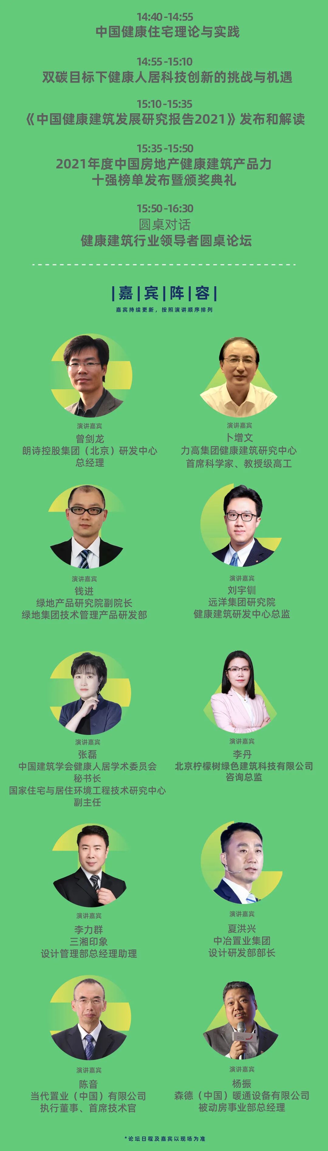 此次论坛现场将发布《2021中国健康建筑发展研究报告》,同时举办“房地产健康建筑产品力十强”及“十大健康人居科技创新产品颁奖典礼”,以表彰在推动健康建筑发展方面做出杰出贡献的企业。