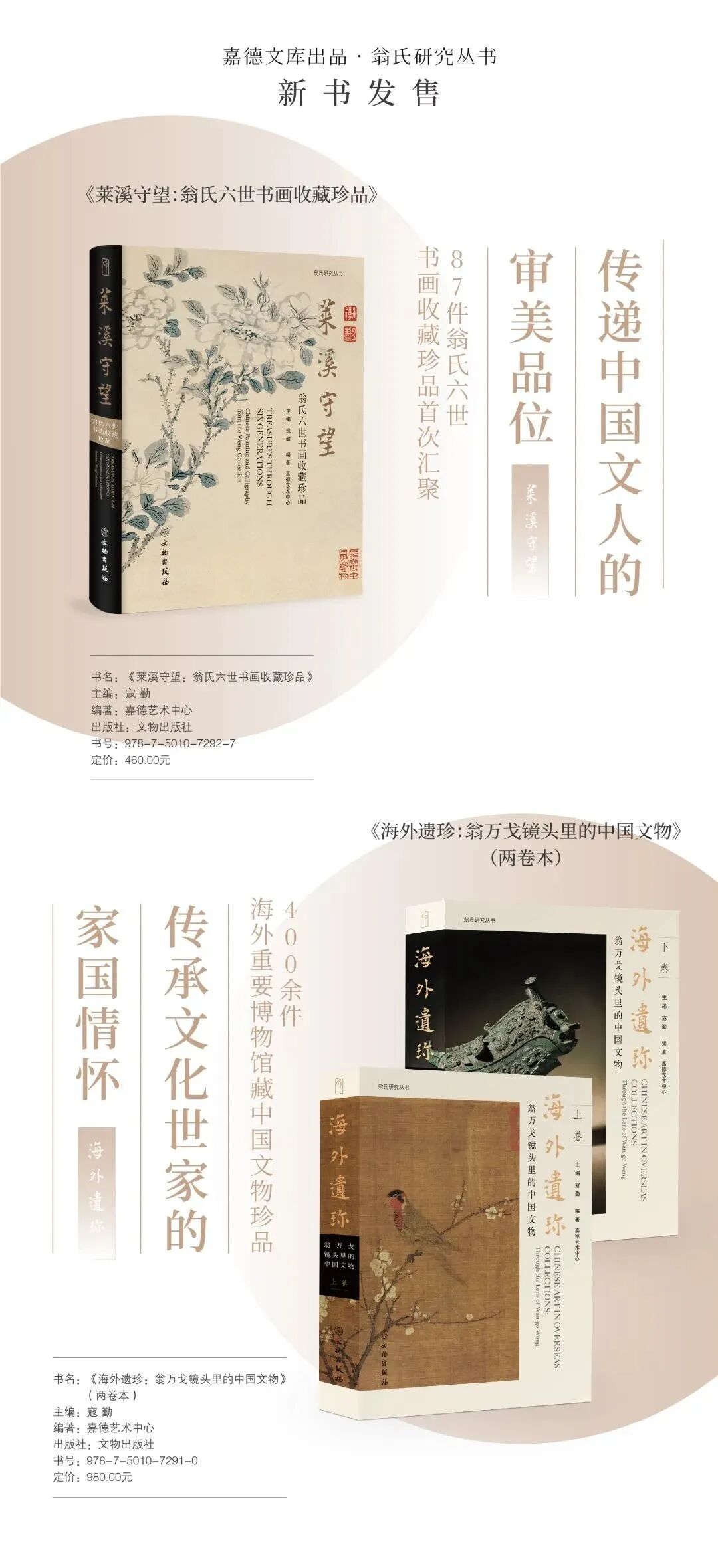 干货2023-08-19 六世传承,百年守望,87件翁氏六世书画收藏珍品集结出版 中国私人收藏史上的纪录 重要文化世家六代珍藏 170年传承与守望 6位大家品评追忆 87件翁氏书画收藏精品 公诸于世 传递中国文人的审美品位 传承文化世家的家国情怀 ■ 书名:《莱溪守望:翁氏六世书画收藏珍品》 主编:寇 勤 编著:嘉德艺术中心 总 策 划:寇 勤 李 昕 封面题签:白谦慎 专家顾问:尹光华 拓晓堂 郭 彤 栾静莉 书画摄影:翁万戈 撰稿:尹光华 等 特约设计:蔡立国 特别致谢:翁以思 翁以钧 特别支持:中国嘉德国际拍卖有限公司 责任编辑:赵 磊 特约编辑:杨 涓 严 冰 吴萌萌 英文审校:应非儿 杨慕涵 出版发行:文物出版社 开本:635mm×965mm 1/8 书号:ISBN 978-7-5010-7292-7 定价:460.00 元 《莱溪守望:翁氏六世书画收藏珍品》是嘉德文库“翁氏研究丛书”的第二本,是对翁氏六世家藏书画珍品的首次整理。全书内容分三部分:“莱溪读画”“莱溪珍品”“莱溪追忆”,以图文的形式,集中展现87件中国书画珍品。它们是一个重要文化世家日积月累的收藏;是在近170年间六代人精心护持下的传承与守望;是屡逢动荡,仍得以保存并传诸后世的珍贵文化遗产。它们富于文化意义,反映着中华文化的辉煌。今天我们将这些珍品一一展开,以出版的形式,公诸于世,邀君共赏。 为什么是“莱溪守望”? 翁万戈先生(1918-2020年)是著名的华人社会活动家、收藏家、导演、学者,他出身于常熟名门望族,是晚清重臣、帝师翁同龢的第五世孙,也是翁氏六世收藏的传人。莱溪居是他和夫人程华宝女士位于纽汉普沙洲(New Hampshire)莱姆小镇的半山丛林中的居所,因为坡下有潺潺流水,取名莱溪,以回应常熟老家䌽衣堂老莱子娱亲的故事。 “我过继时不足半岁,懵懂无知,常熟䌽衣堂、墓地、丙舍及一切文物虽然归我名下,实际上全靠强氏母亲及本生父母协助保管,一直到30年后。1948年,我已留美10年,随妻程华宝及女儿以思回国,才初次看到在天津的文物遗产。 那时解放战争正达到顶峰阶段,我决定将天津藏品运到上海,又碰到了通货超级膨胀,经济崩溃,不得已在11月17日乘美国西北航空最后一班机与故国离别。事先把文物装箱海运,找最可靠的公司,怀着深沉的忧虑。幸而天从人愿,一切文物安抵纽约,开始了我“守藏”的任务,实质上做了这一部分翁氏六世收藏的传人。”(摘自《海外遗珍:翁氏六世书画收藏珍品》前言《翁氏六代珍藏及其文化意义》) 从此,翁万戈先生开启了与这些珍贵收藏相伴其一生的传承与守望。而翁先生亦是为这些家族收藏付出了一生心血。正如寇勤先生所说“他这一辈子,把翁氏家族收藏的研究和出版、传承做到了极致。” ■ 启功 行楷书《莱溪居》 纸本水墨 有框匾 纵45厘米 横80厘米 莱溪读画 ——书画鉴藏大家读画追忆 鉴藏大家谢稚柳、启功、杨仁恺、傅熹年先生莱溪读画,品评佳作;著名学者白谦慎先生追忆“翁万戈先生写给我的十五封信”。 翁氏藏梁楷《道君像》得到谢稚柳先生的激赏,特撰《论梁楷<黄庭经神像图卷>》一文,谢先生说道“梁楷很幸运,我们也比宋濂幸运,一卷细笔白描的《黄庭经神像图》(即《道君像》)真本幸尚存于世,说他是受到李公麟的影响,这一卷正是明证,也是梁楷画笔中流传下来的唯一孤本。” ■ 宋 梁楷《道君像》 纸本水墨 卷 纵 25.9 厘米,横 73.7 厘米 (上图为作品局部图) 启功先生品评《灵飞经》四十三行本,“庐山真面入目以后,才真正看出唐人的笔法墨法,始知无论《渤海》《望云》都一样‘走了样’。尤其墨彩飞动的特点,更远远不是石刻拓本所能表现万一的。” ■ 唐 佚名 灵飞经(9 开) 纸本水墨 册 纵21.8厘米,横9.6厘米 (上图为作品局部图) ■ 翁万戈 1990 年作《莱溪雅集图》 纸本设色 卷 (一)纵29.7厘米,横93.5厘米(二)纵29.7厘米,横89.7厘米(三)纵29.7厘米,横93.1厘米 围桌而坐者左起为杨伯达、王季迁、杨仁恺、谢稚柳、徐邦达、黄君实,右立者为翁万戈本人,左方立者一为翁夫人程华宝,一为严文龄女士。 令杨仁恺先生难以忘怀的是1985年5月的那场“莱溪雅集”,他与谢稚柳、王季迁、徐邦达、杨伯达、黄君实一行六人应翁万戈先生之邀,前往莱溪别墅做客。“追忆这次海外雅集,时间虽然匆促,但我们整天陶醉在画海书林之中,心情之舒畅,可得而知。当主人不断提供出唐宋名迹、元明珍品、清代翰墨陈放在面前时,如行山阴道上,大有应接不暇之势。”“最令人难以忘怀的几件沈周名作,《谢太傅游东山图》(《临戴进谢安东山携妓图》)大轴,作者自题仿自戴文进,山水与人物相得益彰,重彩与精工描绘妙夺天机。我们一向认为的沈氏风貌,有粗细笔之分,然而这样精细工丽的绝品,确乎仅见。它使人联想起梁楷的《道藏扉画》,以及所谓马远的《西园雅集图》(现藏美国纳尔逊艺术博物馆),既是价值连城的珍品,又是研究这些名画家极为宝贵的材料。沈氏乃明中期吴门画派之领袖,他的造诣之精湛,是当之无愧的。” ■ 明 沈周 庚子作 《临戴进谢安东山携妓图》 绢本设色 轴 纵170厘米,横89厘米 傅熹年先生在《翁万戈先生所藏书画》一文中,就其中感受最深的作品做了简要介绍,并写道“给我印象最深处是它是一个重要文化世家日积月累的收藏,是在170年间精心护持所取得的保存文化遗产的杰出成果,这是更为难能可贵,值得我们尊重之处”。 白谦慎先生