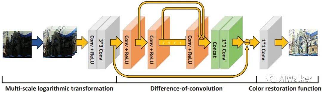 上图给出了作者所涉及的网络架构图,它具有两个优点:亮度图的有效学习与整体网络的高效计算。