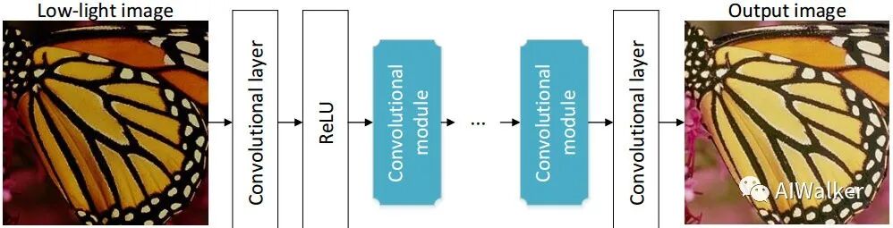 GLADNet的核心:(1)为低光输入计算全局亮度估计;(2)基于前述所得与原始输入调整亮度。它将输入图像缩放到特定尺寸并送入到编解码网络中生成关于亮度的全局先验信息,基于全局先验信息与原始输入图像,采用卷积神经网络进行细节还原。在训练过程中,作者采用RAW图像合成的数据进行训练。通过大量实验验证了所提方法的有效性。