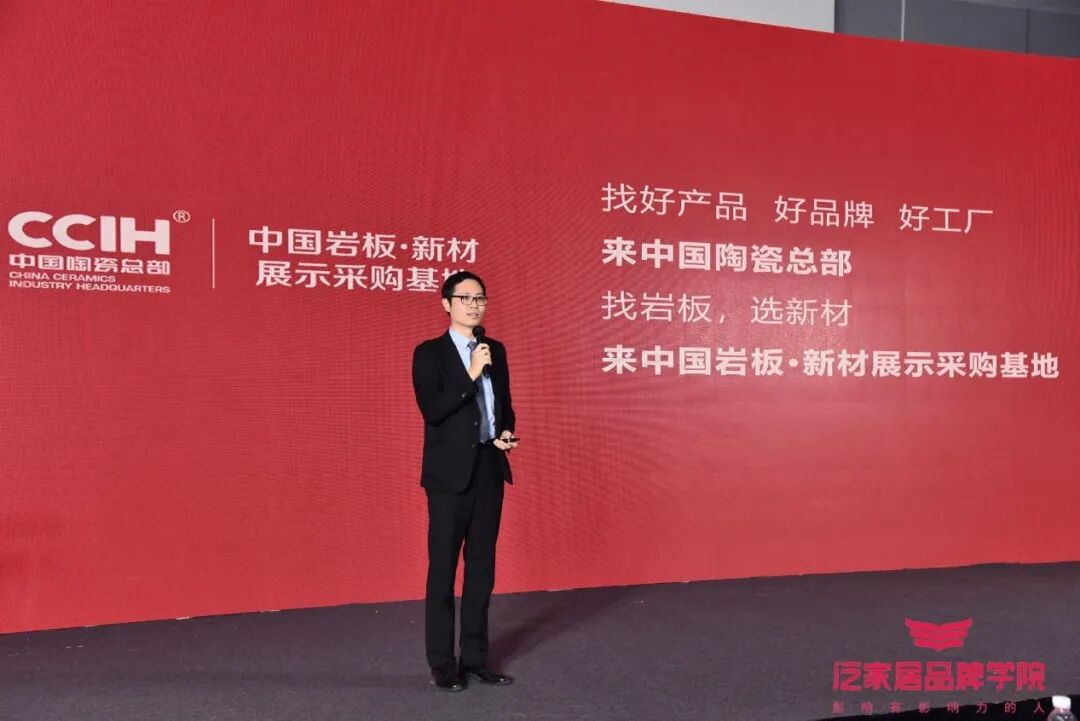 中国陶瓷总部基地作为泛家居品牌学院教学基地,活动现场,中国陶瓷总部营运总经理助理黄震宇对泛家居品牌大会的成功举办表示了热烈的祝贺,并为大家介绍了总部园区的良好环境及招商情况。