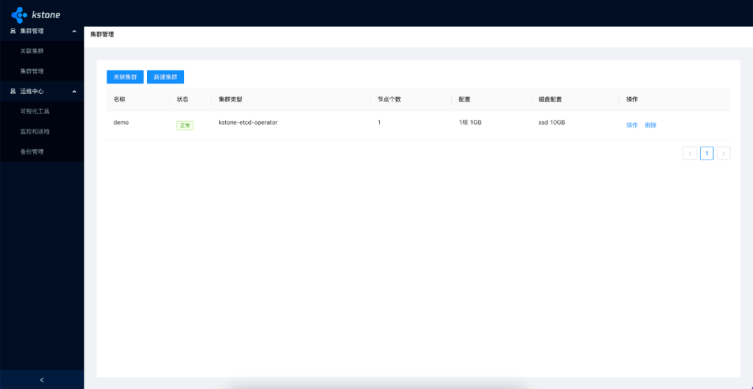 集群管理:Kstone不仅支持关联已有集群,而且内置了一个高级版的 kstone-etcd-operator,它将可以帮助你在K8s集群上高可靠的部署etcd集群。所以,无论你是存量的Kubernetes的etcd集群管理诉求,还是你希望创建新的etcd集群提供给注册中心、APISIX网关、配置存储等业务场景使用,kstone都可以实现以上各类场景的etcd集群管理。