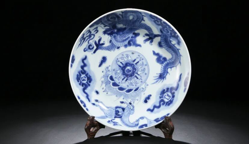 描述:此件清乾隆·青花缠枝莲纹盘(官),敞口,浅弧壁,圈足。胎体坚白细润,釉质莹润,形制规整,匀称而不显厚重,颇有轻盈之感。青花发色浓郁,绘画技法流畅,布局疏密有致,活泼婉转,毫无拘泥拖沓之感,制作之精细由此可见一斑。堪为为典型乾隆朝官窑制品。