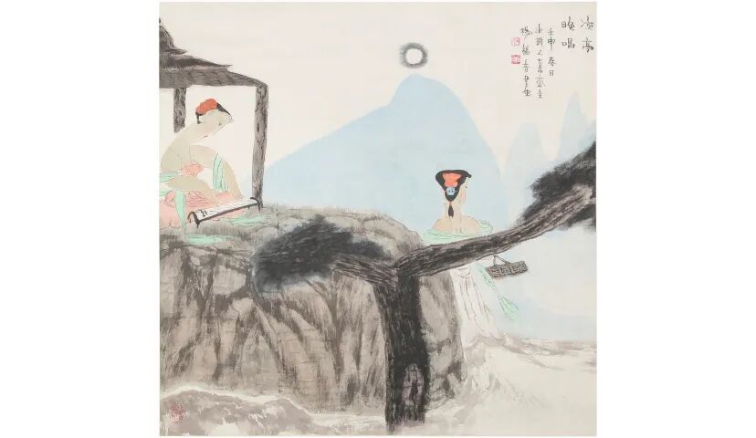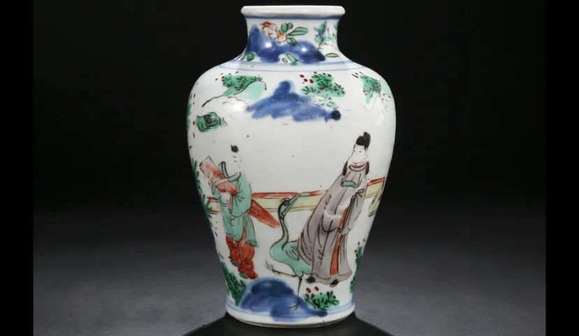 名称:清顺治·青花五彩携琴访友图梅瓶