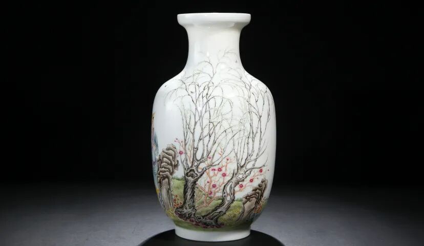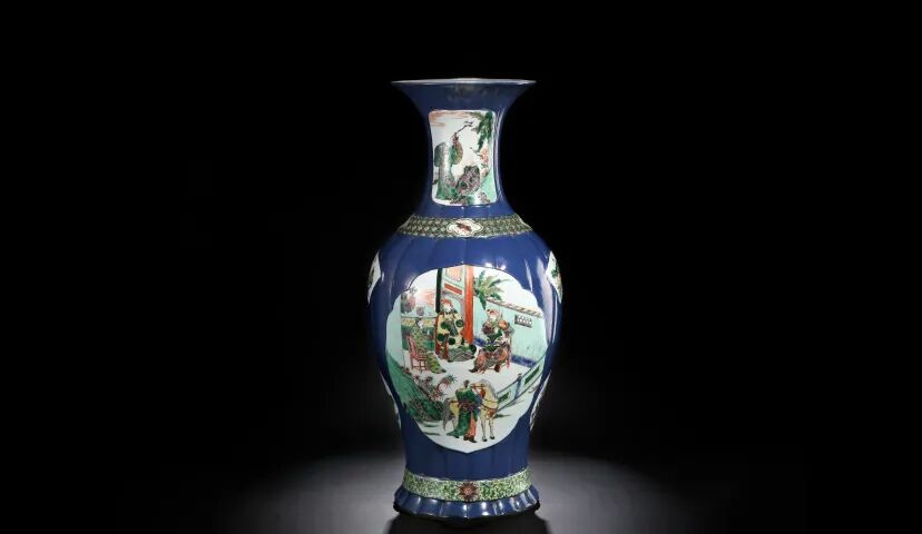 名称:清晚·洒蓝开窗五彩人物故事纹大观音瓶