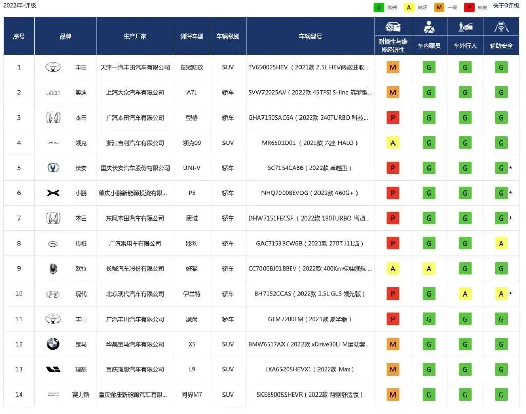 实际上,在此次参与碰撞的14款车型里,具体的评价项目中没有清一色拿到“G”的自主品牌并不在少数,比如影豹、小鹏P5、长安UNI-V。