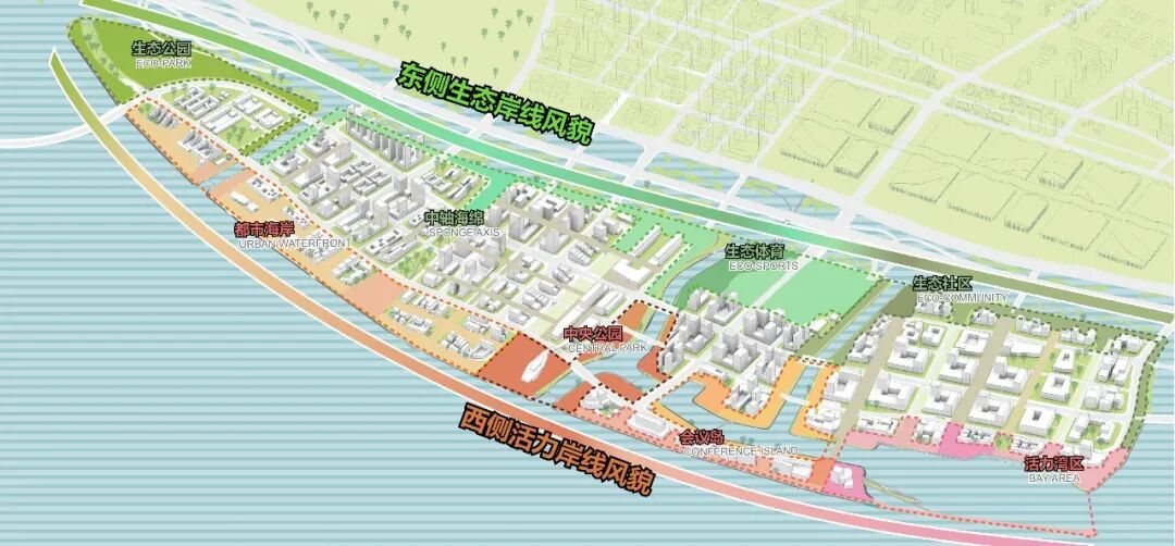 项目将应用“基于自然的解决方案”,通过一系列滨水生态工具和公共活动空间统筹设计,打造会呼吸的海堤、自然生长的湿地和弹性多元的绿地景观,塑造健康韧性的海陆生态本底,实现人、海、城的自然共生。