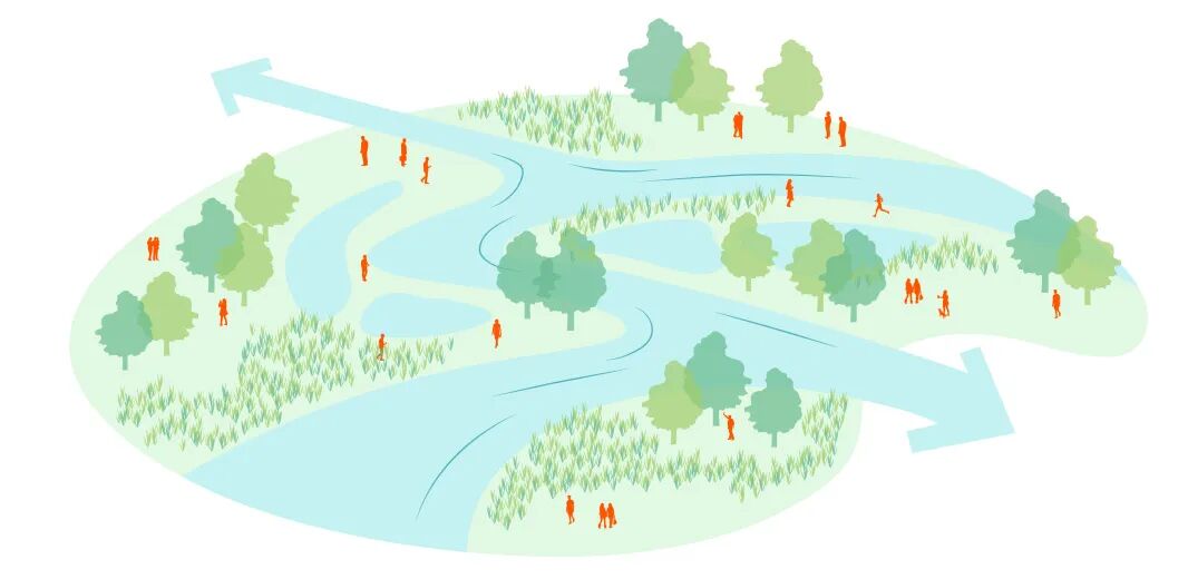 方案将遵循自然演替,借力在地水流输沙特征和植物自然演替规律,通过“自然筑底-生态育境-共塑原乡”三大步骤,形成一套自我维系、动态平衡的城市生态系统,提升城市生态免疫力。