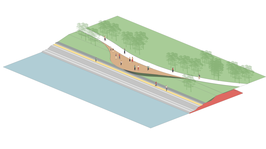 方案将营造蜿蜒自然的水陆交错带,增加过渡带面积,恢复自然脉冲。在水流脉冲的变化下,湿地将形成不同的水深梯度,营造多样流态,孕育潮间生境。