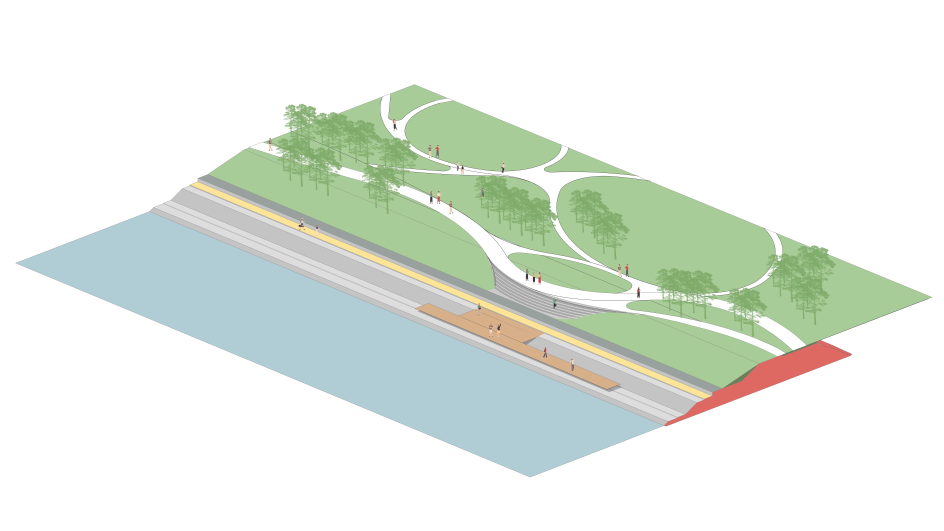 5.如何 统筹考虑基地狭长的空间,打造有趣多维的亲水空间?