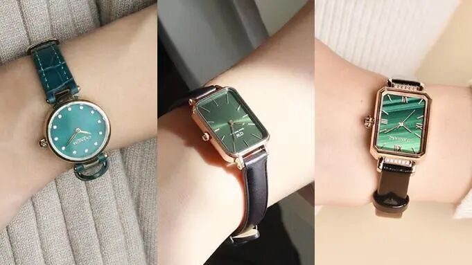 从产品层面来看,“小绿表”本身就具备爆款基因。它采用精致的小方盘设计,迥异于主流的圆形表盘。同时,它将孔雀石的纹理和颜色运用到设计中,打造英伦复古风格的孔雀绿表盘,在黑白灰色调为主色调的腕表市场中显得更为亮眼。