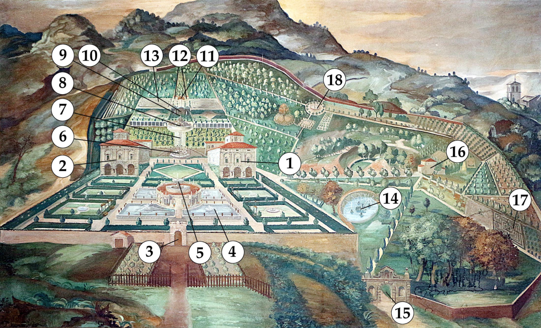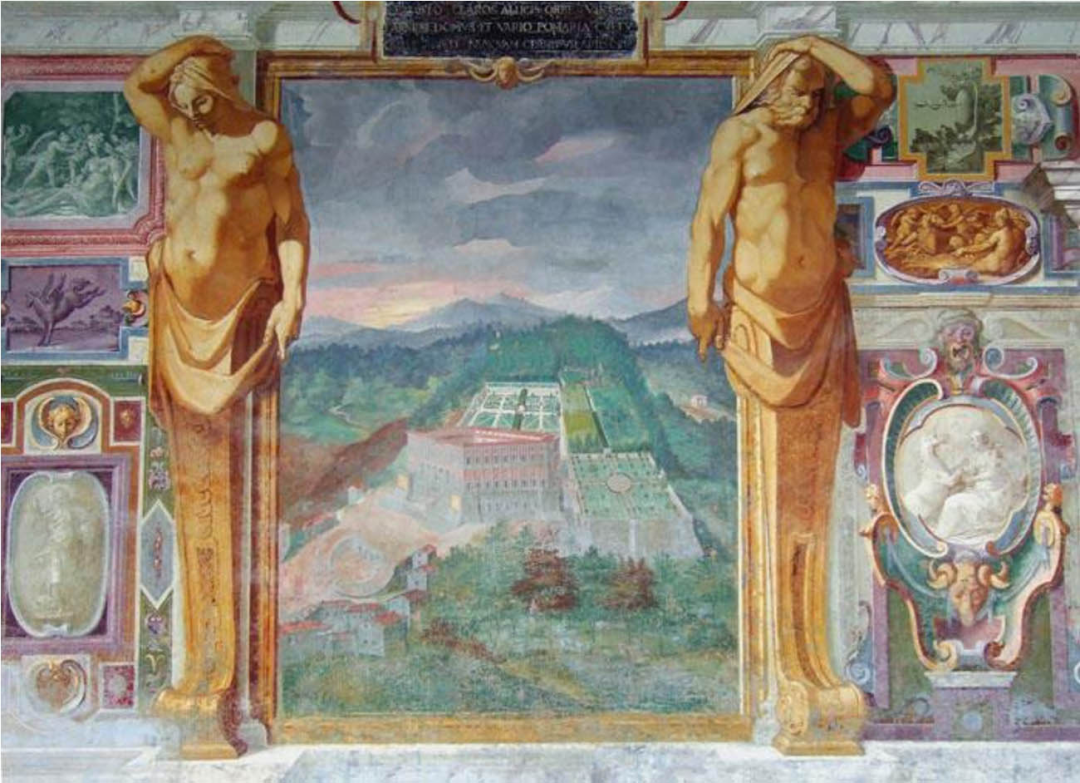 有了设计师,我们还得有几个多金的甲方爸爸,兰特庄园的建设历经了两任红衣主教,分别是甘巴拉(Gianfrancesco Gambara )和蒙塔尔托(Felice Peretti di Montalto),是不是看着这些名字就发懵,没关系,你只需要记住他们喜欢把家族的徽标放在园林中即可。