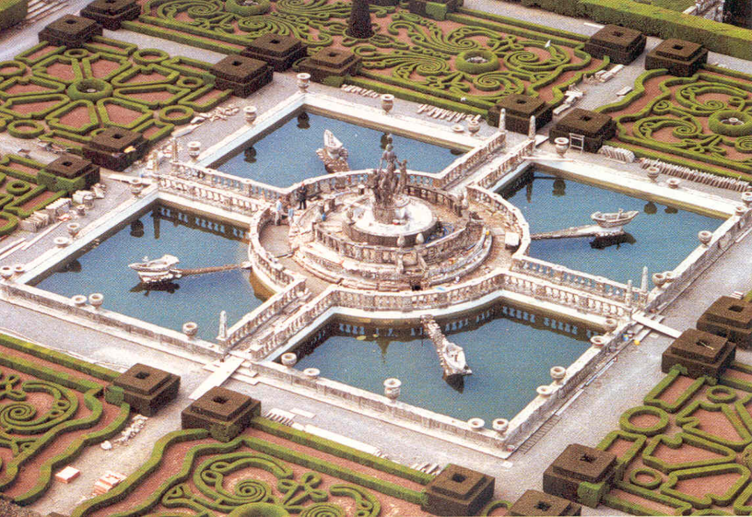 这里的水池也有隐喻,它代表了古罗马时期的海战剧场(naumachia)