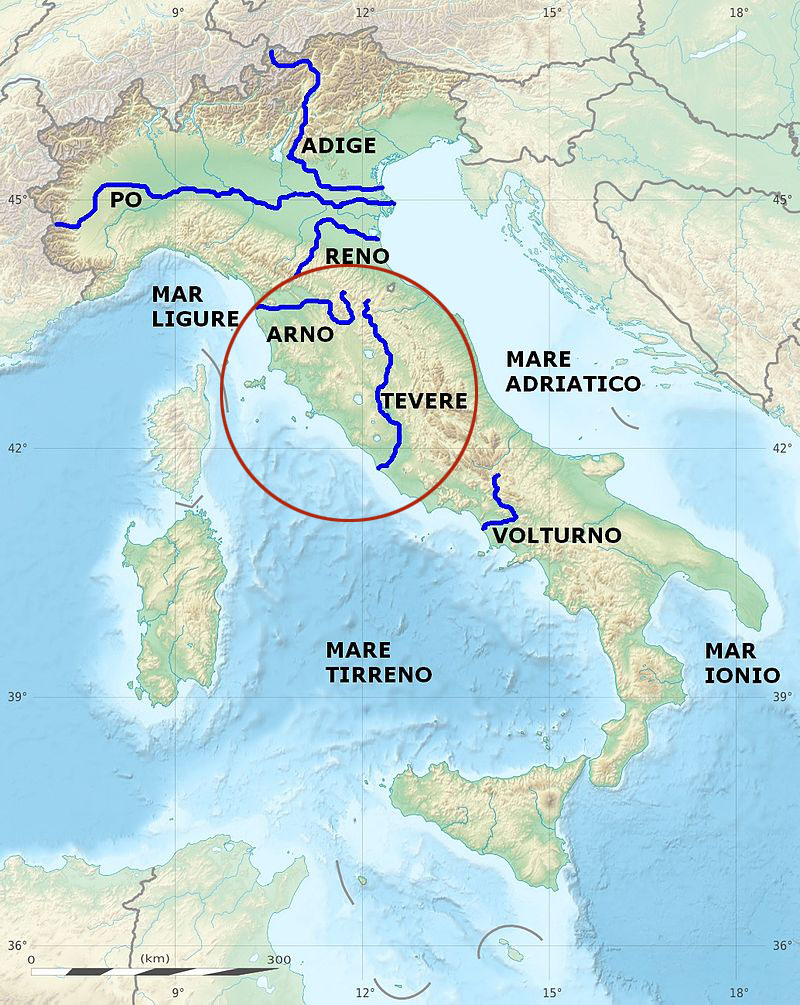 这种半裸斜倚的男性代表了河神,在这里具体指的是意大利中部最重要的两支径流台伯河(Tiber)和阿诺河(Arno)。