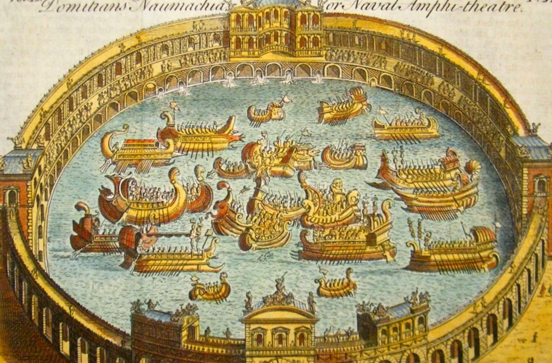 最早的海战剧场是由凯撒在台伯河附近建设的,后来就变为了古罗马大城市的一种标配剧场出现了。