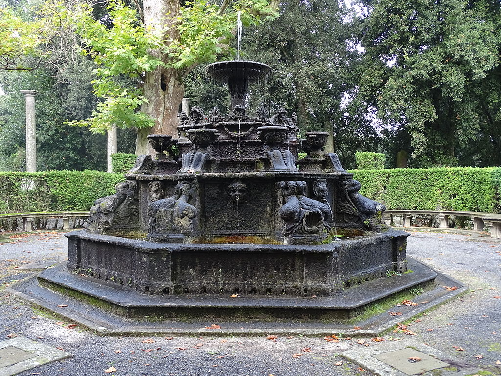 这座喷泉的每一个喷头都模仿了古罗马的油灯造型,可以想象如果喷泉发光的话就像是丛丛的火焰。