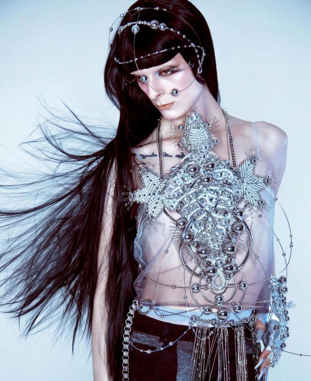 以头饰为主要设计方向,集重金属、未来主义、机械于一身,通过超次元的搭配,打破珠宝了常规定义,通过多维度的创作去呈现未来主义。