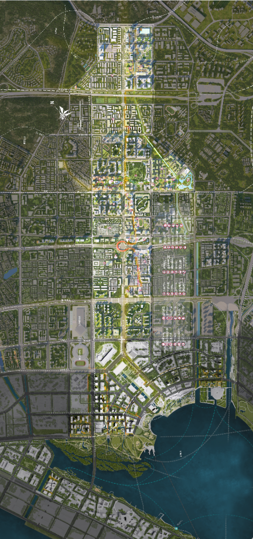 设计方案提出“公园大道”设计概念和“共创+众创”实施理念,通过公园和街道构筑具有前瞻性的空间骨架,整合分散商业项目,增加产业空间供给,采取多措并举、文脉传承的更新方式打造多功能复合大道。