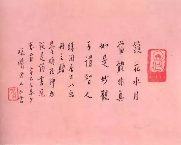 观弘一法师的书法作品,完全可以说达到了书法与所书文字两者之精、气、神的完美统一与融合,朴质无华而感人至深。其境界可谓“超出三界外,不在五行中”;他的最后偈言或与之最契:“华枝春满,天心月圆”。