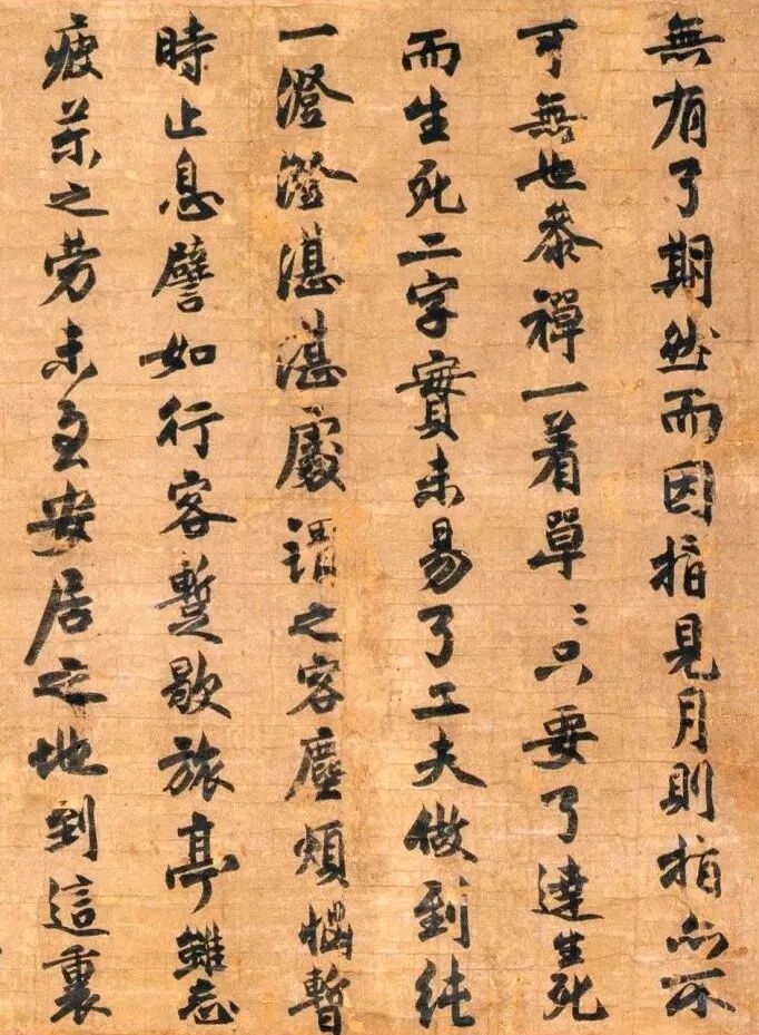 此书法亦足见圜悟克勤超凡离俗的精神气质,其书用笔温文尔雅,风神超迈。深得初唐虞世南、褚遂良两家遗韵,也兼得同时代米芾行书之雅致。字里行间,挥洒自如端秀中内藏刚毅之气,实有绵里裹针之妙,堪称宋高僧中一件风格高峻、出类拔群的名迹。