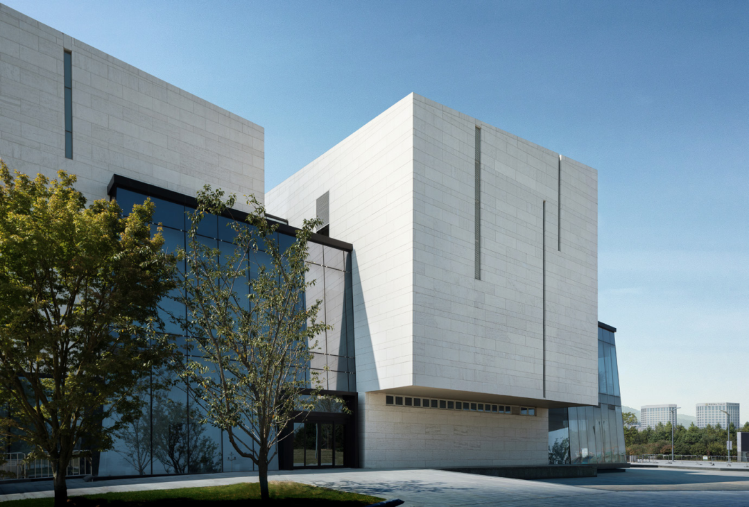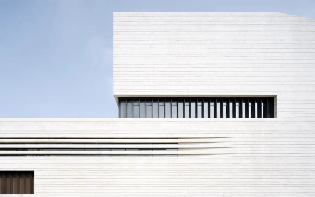 2022年7月8日开放的浦东美术馆,由法国著名建筑师、普利兹克奖得主让·努维尔操刀设计。与让·努维尔以往的作品比起来,浦东美术馆的外观有些朴实低调,它有着极为洗练的几何线条,外观纯净节制,建筑纯白的立面石材是从山东运来的白麻花岗岩,由工匠打磨后,形成粗粝自然的表面肌理,像是细雨飘洒在建筑上留下的印迹。