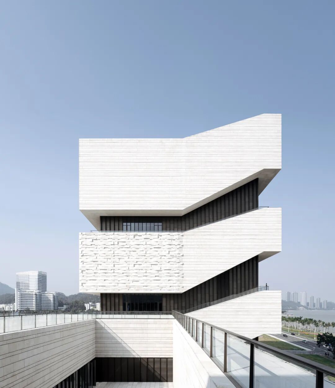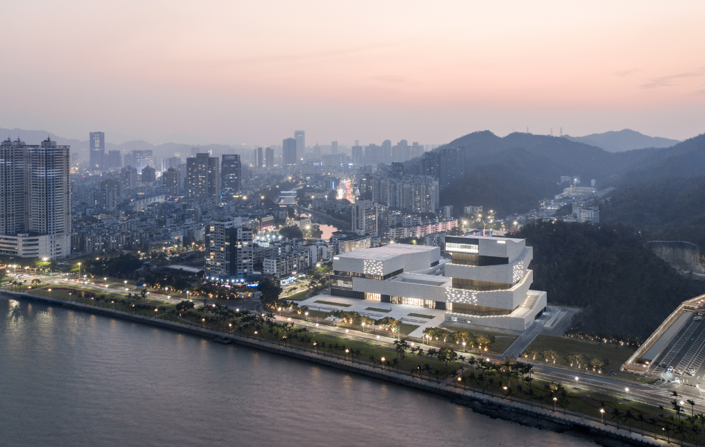 自20世纪80年代以来,毗邻港澳的南方城市——珠海市从一个小渔村发展为中国最负盛名的度假胜地之一。珠海市依山傍海,岛屿、海湾星罗棋布,吸引了国内外众多游客。同时,珠海市在20世纪80年代就成为中国最早的自由贸易区之一,经济始终保持高速发展。2009年,冯·格康,玛格及合伙人建筑师事务所(以下简称“gmp”)赢得了珠海博物馆和珠海规划展览馆的设计竞赛。这座文化场馆将珠海的滨海文化历史与城市结构发展融为一体,极大地丰富珠海市的文化、生活资源。
