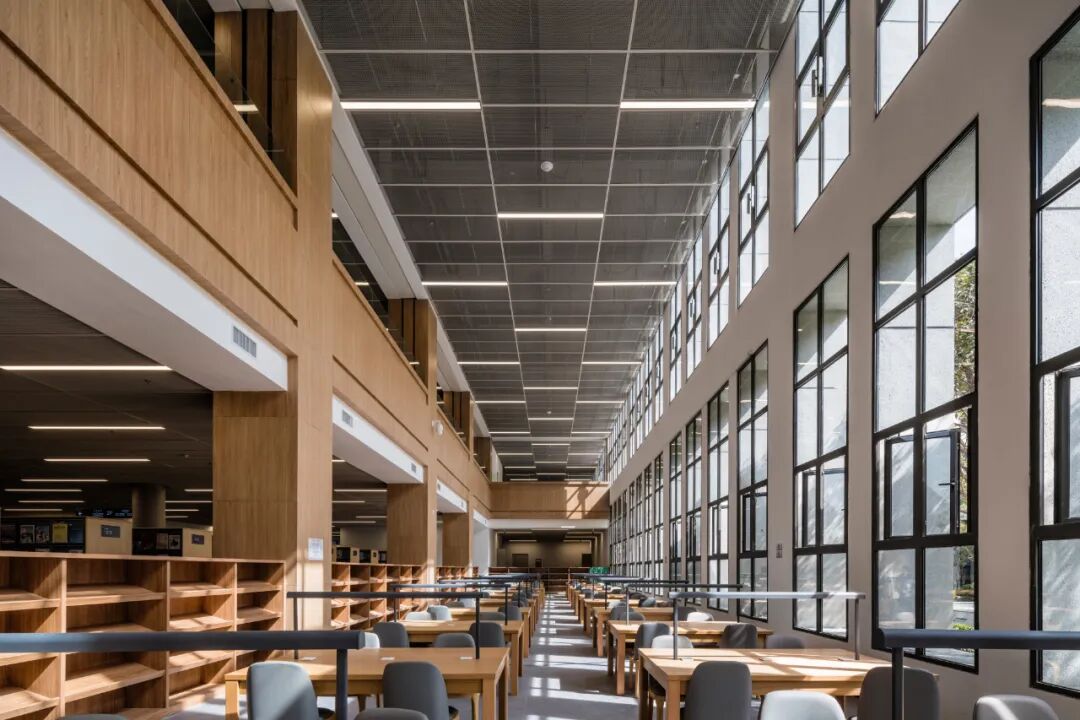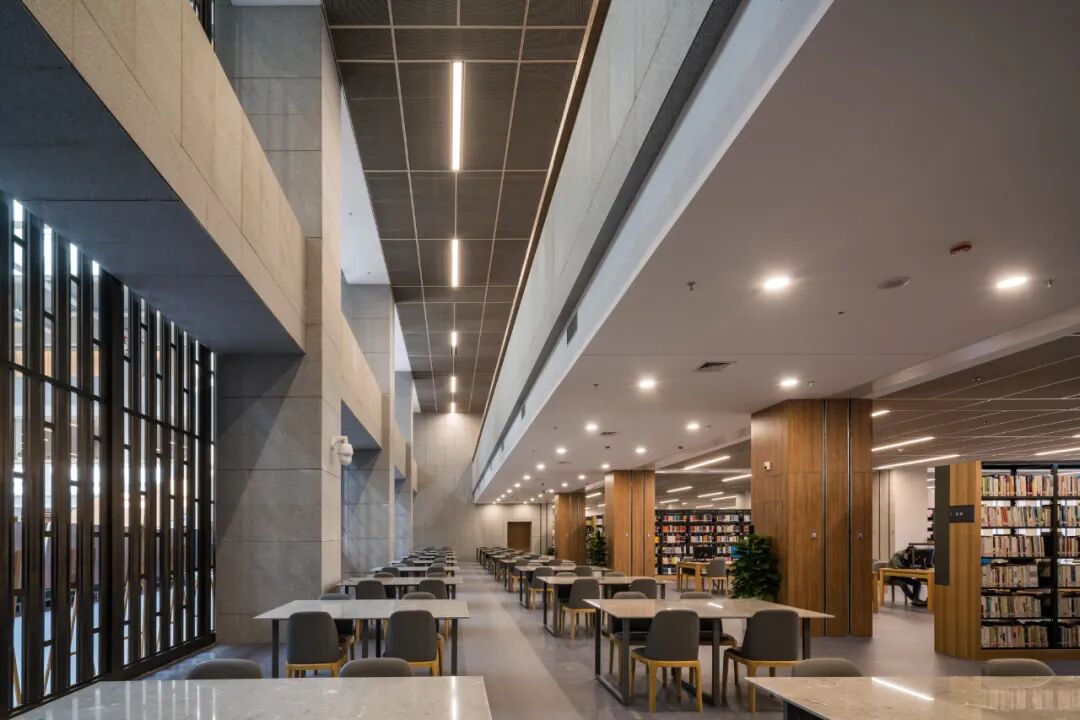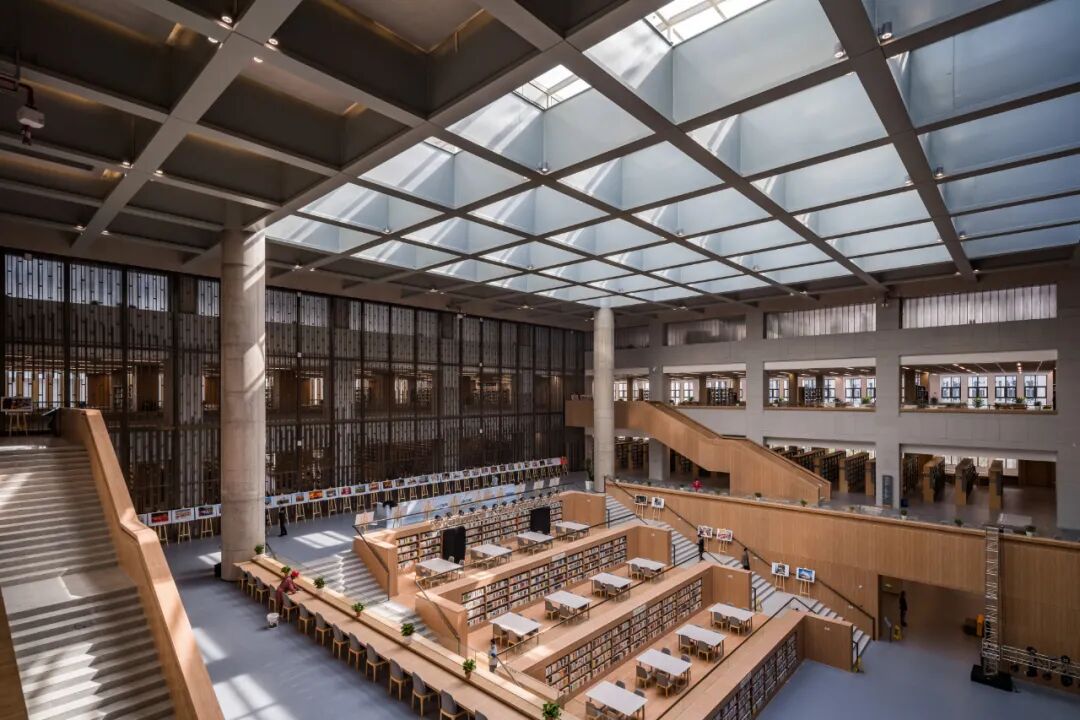 杭州分馆文润阁,由普利兹克奖得主王澍设计,设计围绕“宋代园林神韵的当代藏书建筑”展开,因地制宜,随山就势,突出江南色彩、宋韵元素、浙江特色,用现代手法呼应历史,比如设计采用了大面积梅子青色青瓷屏扇,一关一合有了古代屏风的味道,大量的木质结构,宋代常用的屋顶结构,以及建筑中山水的加持,让人一秒梦回宋朝。