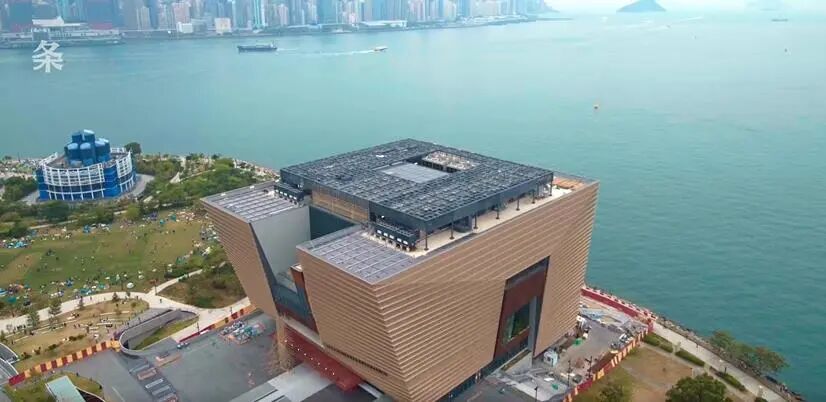 M+博物馆是世界上最大的当代艺术博物馆之一,占地6.5万平方米,超过了纽约的MoMA,是伦敦泰特现代美术馆的两倍。设计师是享誉全球的建筑事务所赫尔佐格和德梅隆(Herzog & de Meuron)。
