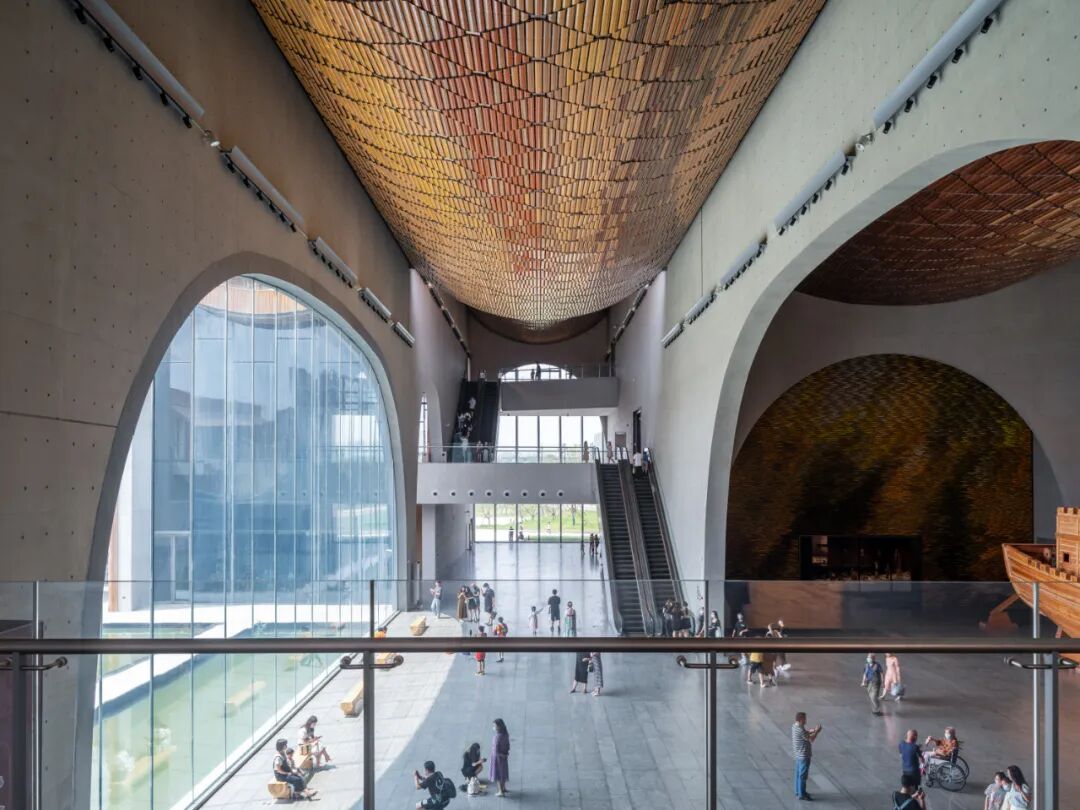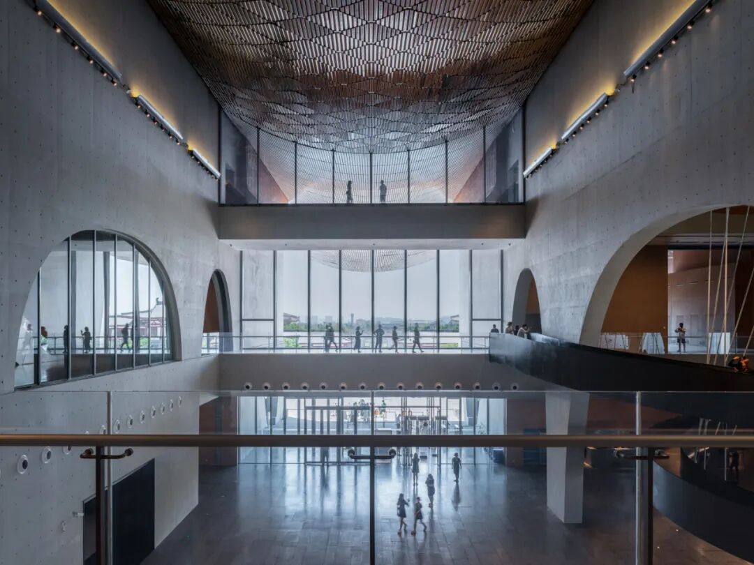 在内部空间设计方面,试图凸显当代博物馆价值的最新理念,比如通常秘不示人的文物修复区,被设置在观展序列的必经之路上,在陶器展厅设置了自然采光的天窗,还原器物自然的展示状态。