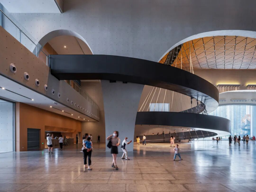 博物馆最具特色的空间之一,是沿着地铁隧道挖掘建造而成的洞穴般的展览空间——“潜空间”,这个复杂的工程,成功建构出一个没有立柱的宽阔空间,三层高的天顶让人可以从不同角度欣赏展品,极具质感的清水混凝土和外露的承重结构,呈现出浓重的工业风格。