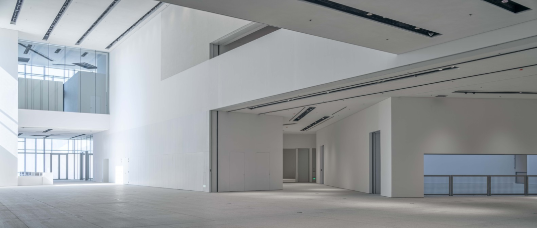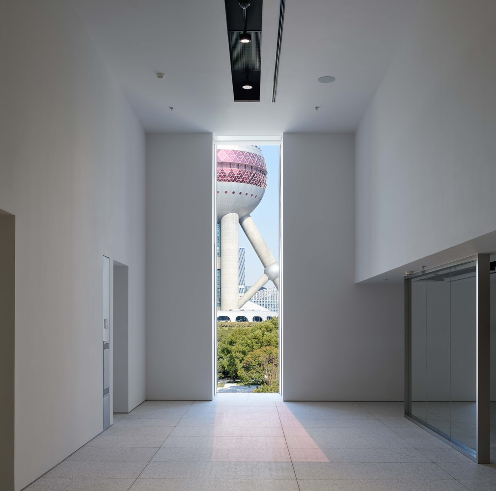 美术馆内部,几何线条切割出13个展厅和开放式公共空间,让观众在步移景异的变换中体验艺术与建筑共谱的旋律。建筑师匠心独运的“框景”手法,增添了空间的诗意和趣味性,最精妙的是面向东方明珠一侧的竖向细长开口,恰好可以将东方明珠以黄金比例框在窗口。