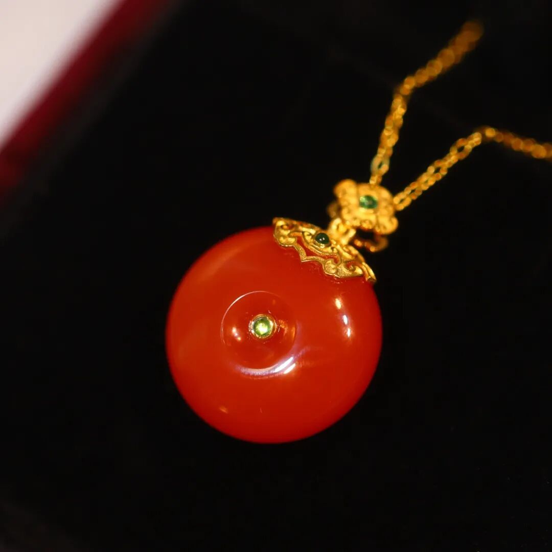作为玛瑙中的当家花旦,南红和普通的红色玛瑙有着明显的不同,它的颜色艳丽,润泽浑厚,质地细腻,有满满的胶质感和油润度,皮实耐用也很容易保养。对着强光看,南红内部可以看到很多微小的朱砂点,这是普通红色玛瑙所不具备的。
